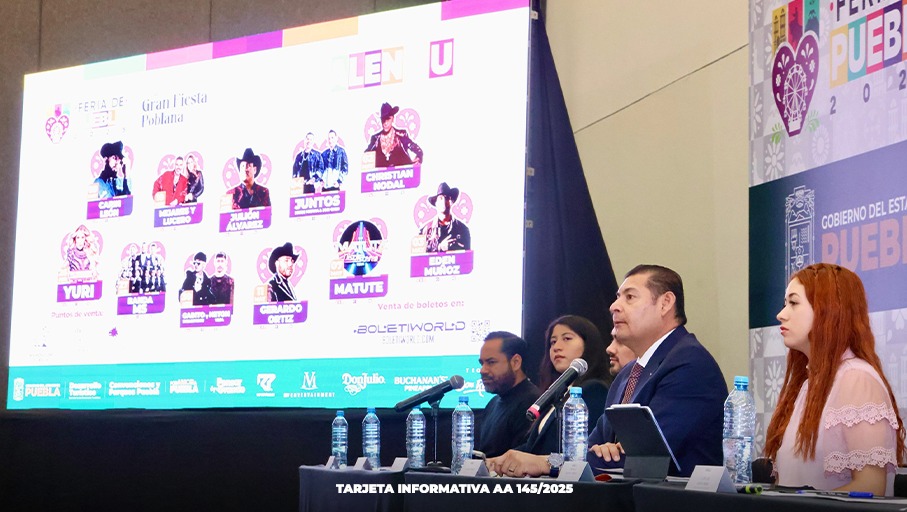 CIUDAD DE PUEBLA, Pue.- Durante la presentación del Cartel Oficial del Palenque de la Feria de Puebla 2025, el gobernador Alejandro Armenta expresó que el evento es el inicio de la recuperación estelar de Puebla en el ámbito artístico, cultural, deportivo e histórico, que ubicará al estado en el centro de atención nacional e internacional, siempre bajo el esquema de la promoción al turismo, del Gobierno Federal de la presidenta Claudia Sheinbaum.
