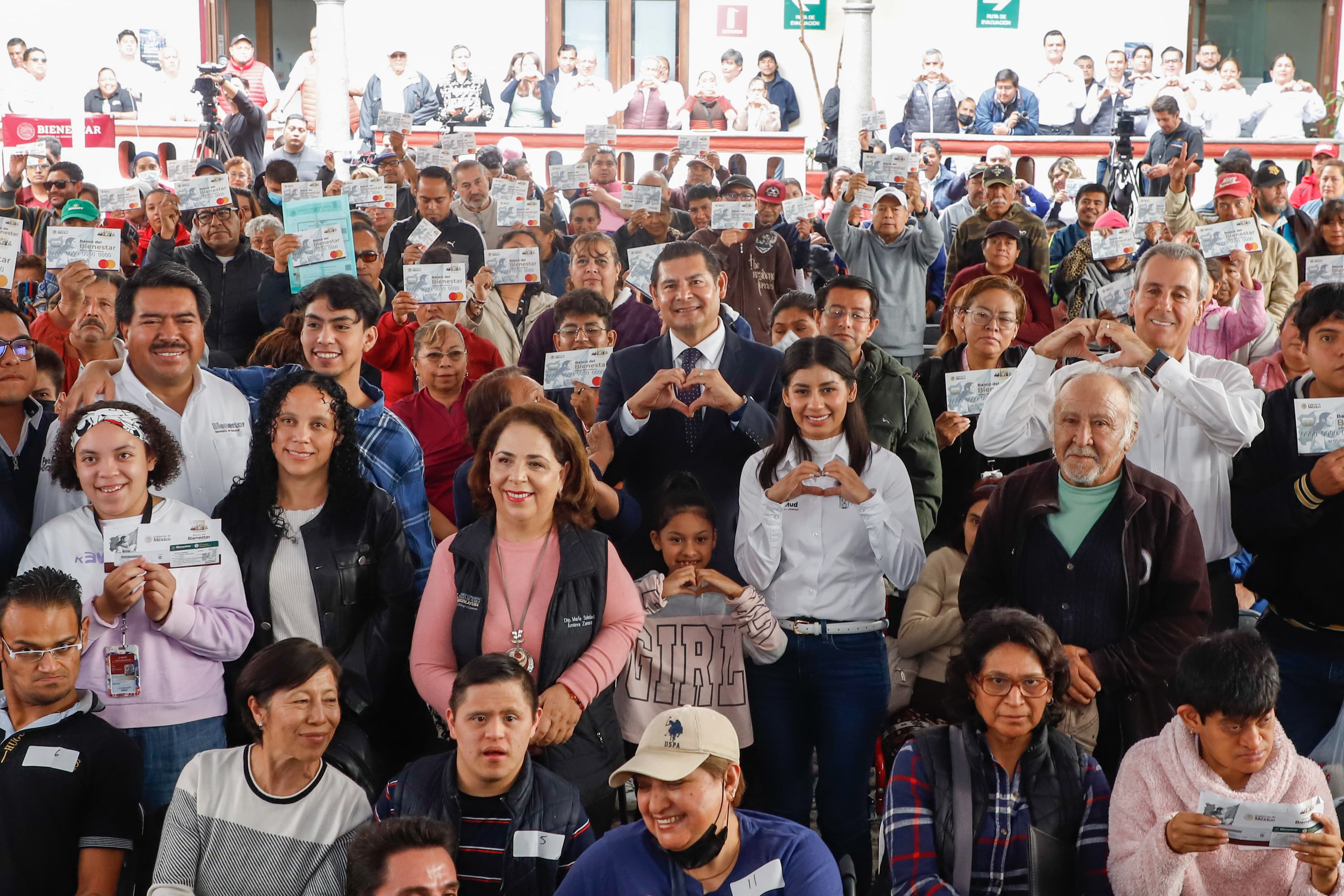 -El gobernador de Puebla, Alejandro Armenta encabezó la entrega de 200 tarjetas del Programa Pensión para el Bienestar de las personas con discapacidad permanente.