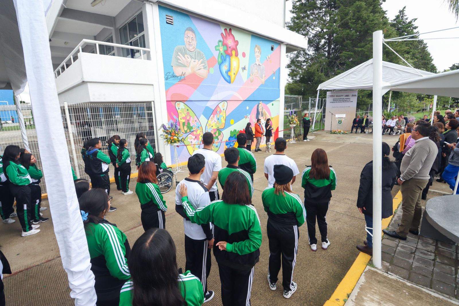 Durante el evento, la Secretaría de Educación entregó reconocimientos al pintor y diseñadores del mural: José Silvano Márquez García, Ana Teresa Ortega Juárez y Yenari Izayana Flores Arroyo, en colaboración con el Congreso del Estado, a través de la diputada Marisol Amieva.
