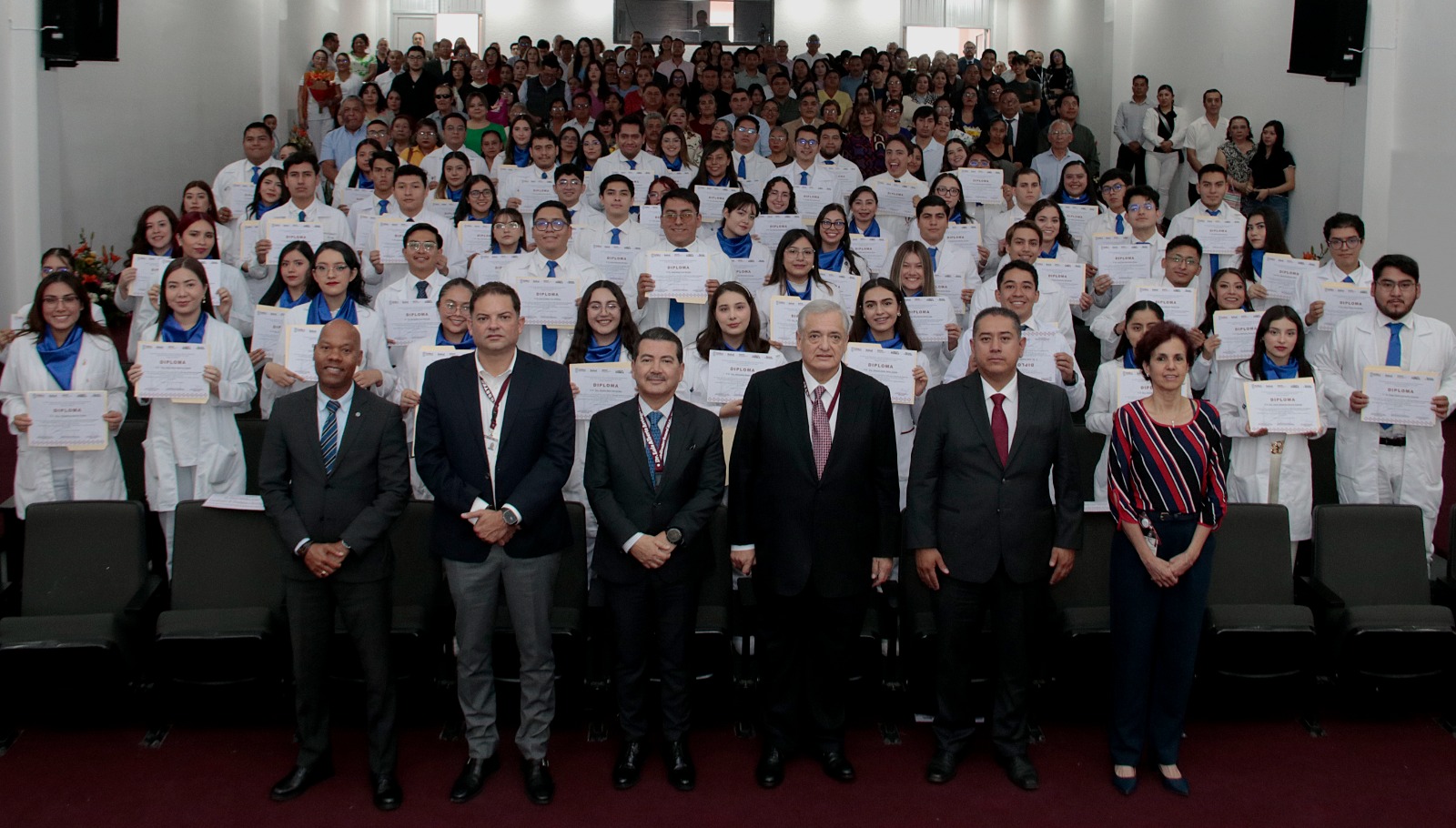 CIUDAD DE PUEBLA, Pue.- Bajo los preceptos de la bioética social que se impulsa desde el Gobierno de Puebla, el Instituto de Seguridad y Servicios Sociales de los Trabajadores al Servicio de los Poderes del Estado de Puebla (ISSSTEP) celebró la graduación de 70 médicos de pregrado, "Generación 2024-2025" y cuya capacidad de alto nivel, será incorporada a diferentes instituciones de salud para realizar su servicio social, el cual es el siguiente paso en su formación profesional.