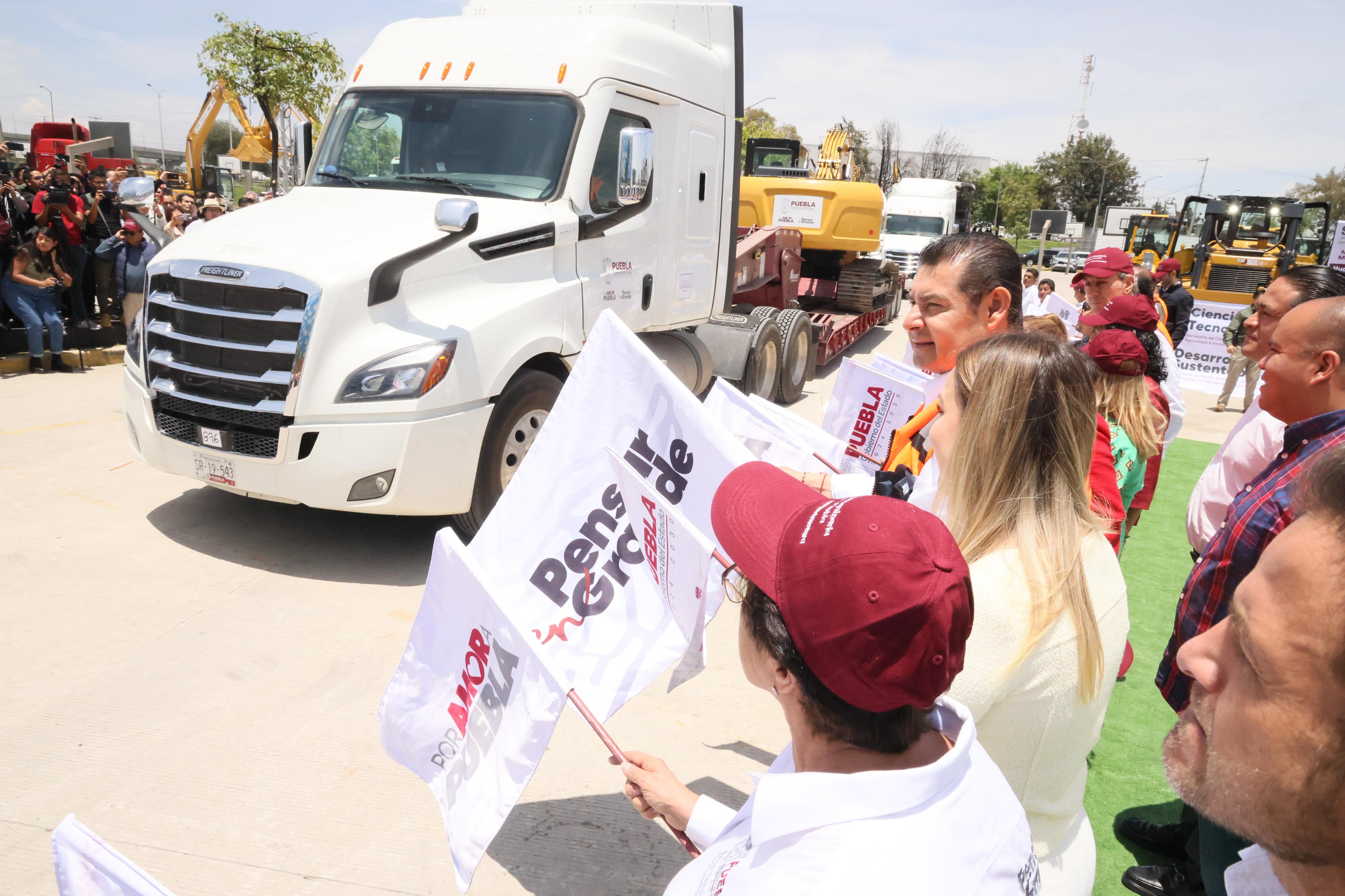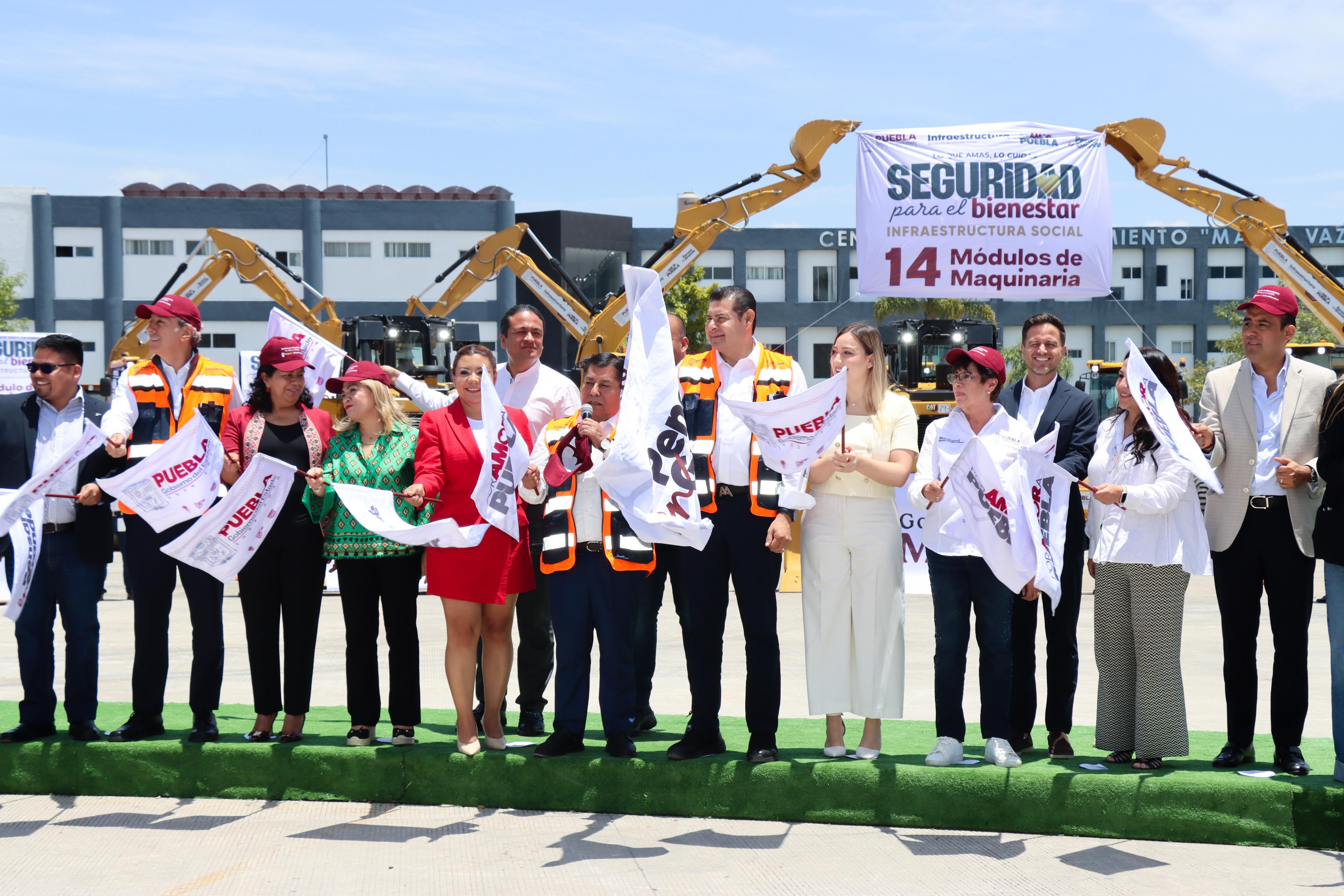 La maquinaria entregada —154 unidades en total, repartidas en 14 módulos — incluye: barredoras urbanas para entradas y salidas de la capital, mezcladoras en frío, recicladoras de carpeta asfáltica, motoconformadoras, retroexcavadoras, excavadoras y petrolizadoras. Este parque vehicular garantiza la seguridad en zonas vulnerables y la reactivación del campo poblano, al darle mantenimiento a los caminos rurales y sacacosechas.