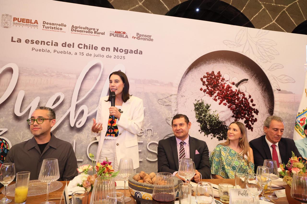 CIUDAD DE PUEBLA.- Al dar inicio formal a la Temporada de Chiles en Nogada 2025, uno de los platillos más emblemáticos de la gastronomía poblana, la secretaria de Turismo del Gobierno de México, Josefina Rodríguez Zamora, invitó a todas y todos a que visiten Puebla, ya que dicho platillo es identidad culinaria que refleja la independencia de un país y la creatividad de las cocineras.