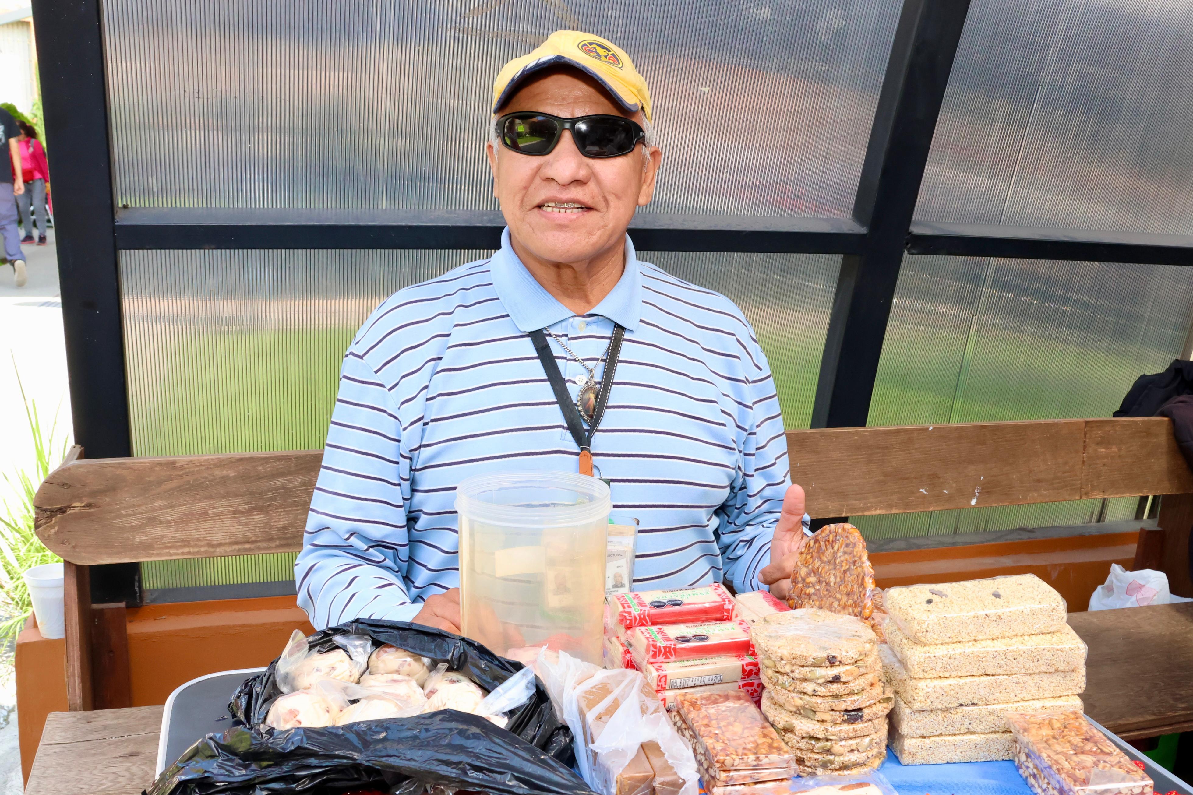 -Participan mujeres y hombres mayores con productos elaborados por ellos mismos o sus familias.