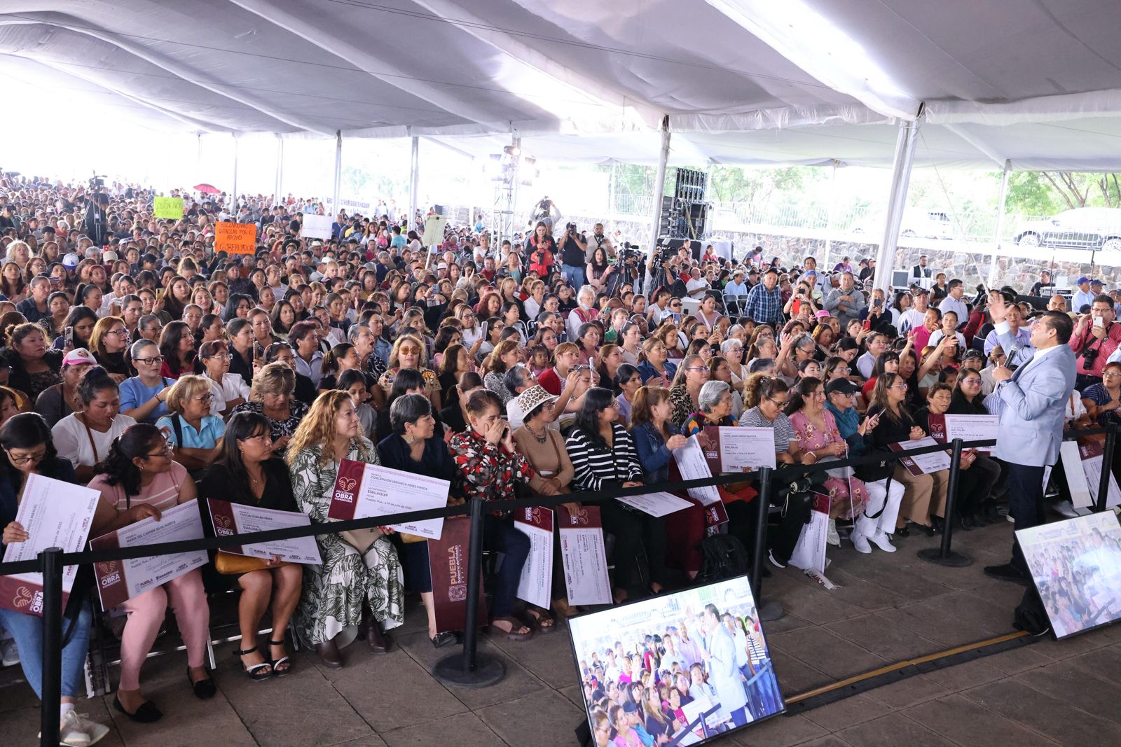 El programa “Obra comunitaria, Por Amor a Puebla” busca rescatar el modelo comunitario, donde la ciudadanía decide en asambleas vecinales qué obras necesita, desde drenaje y pavimentación hasta sanitarios escolares y alumbrado. Por ello, el gobernador anunció que en 2026 se duplicará la inversión estatal en obra comunitaria, ya que alcanzará 2 mil millones de pesos, de los cuales 400 millones se destinarán a la capital. “Este gobierno no impone, escucha. No hace propaganda, hace obra. Y siempre con el pueblo, nunca por encima del pueblo”, expresó.