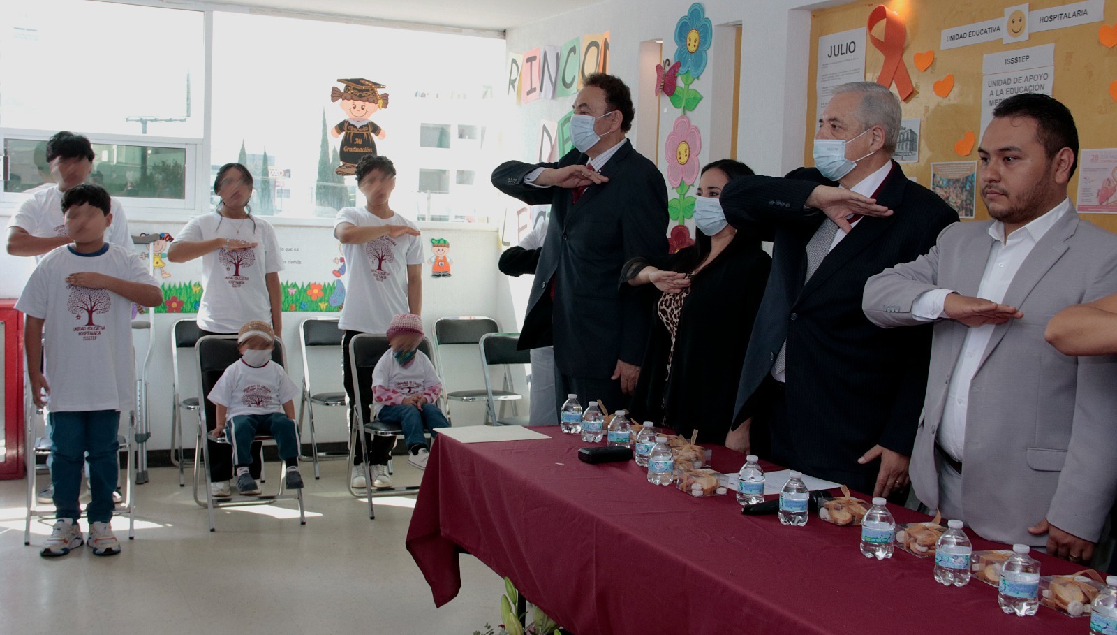 El evento estuvo encabezado por el director general del Sistema Estatal para el Desarrollo Integral de la Familia (SEDIF), Juan Carlos Valdez Zayas; la vocal de Voluntario de la Secretaría de Educación Pública (SEP), María del Socorro Huhin Aguilar; en representación del secretario de la Secretaría de Educación Pública, Alan Armando Cortés; y por el ISSSTEP, el subdirector general médico, Luis Alberto Arriaga; el subdirector general de Prestaciones Económicas y Sociales, Enrique Nácer; y la coordinadora general de la Unidad de Asuntos Jurídicos, Adriana Vichi Cruz.