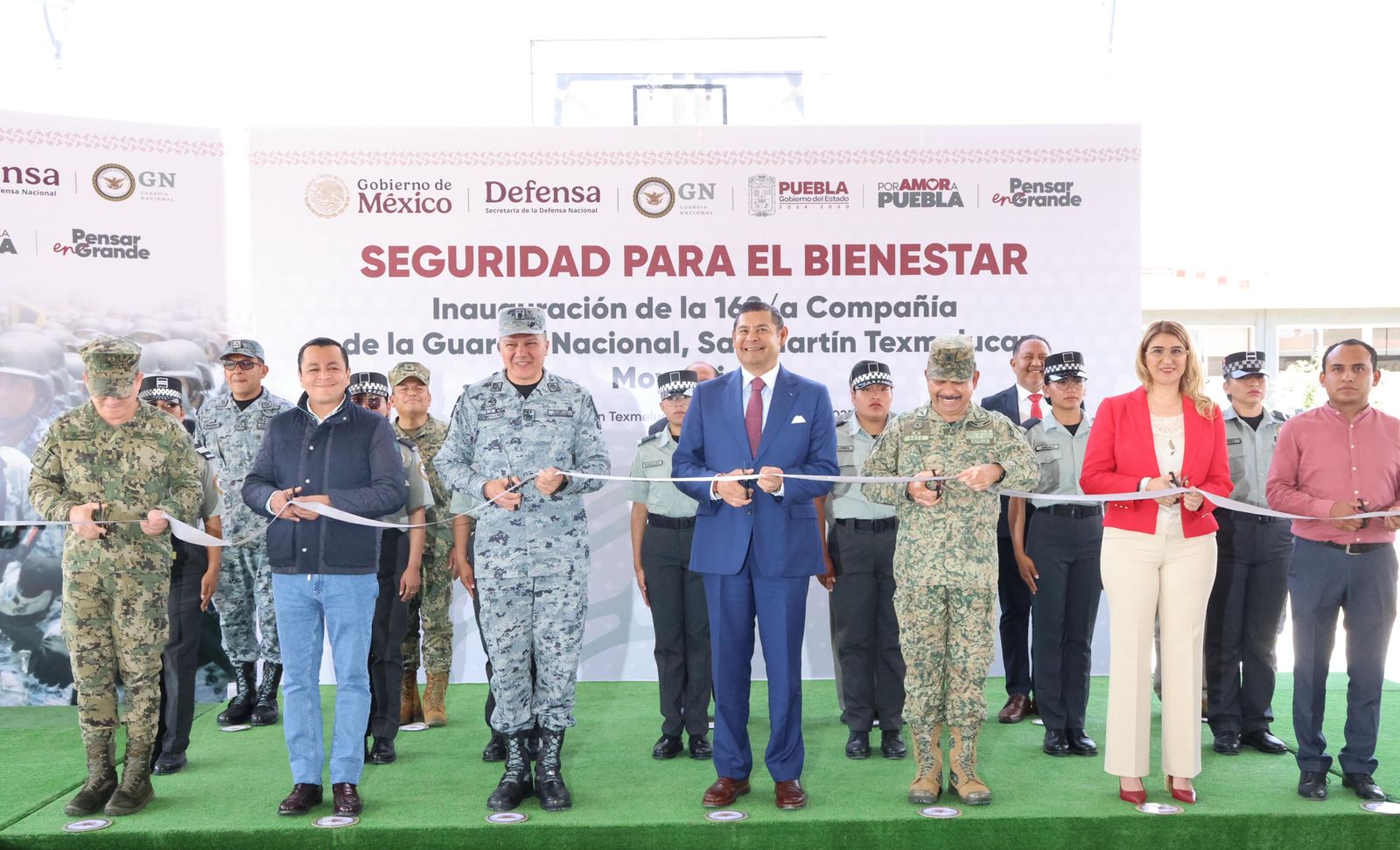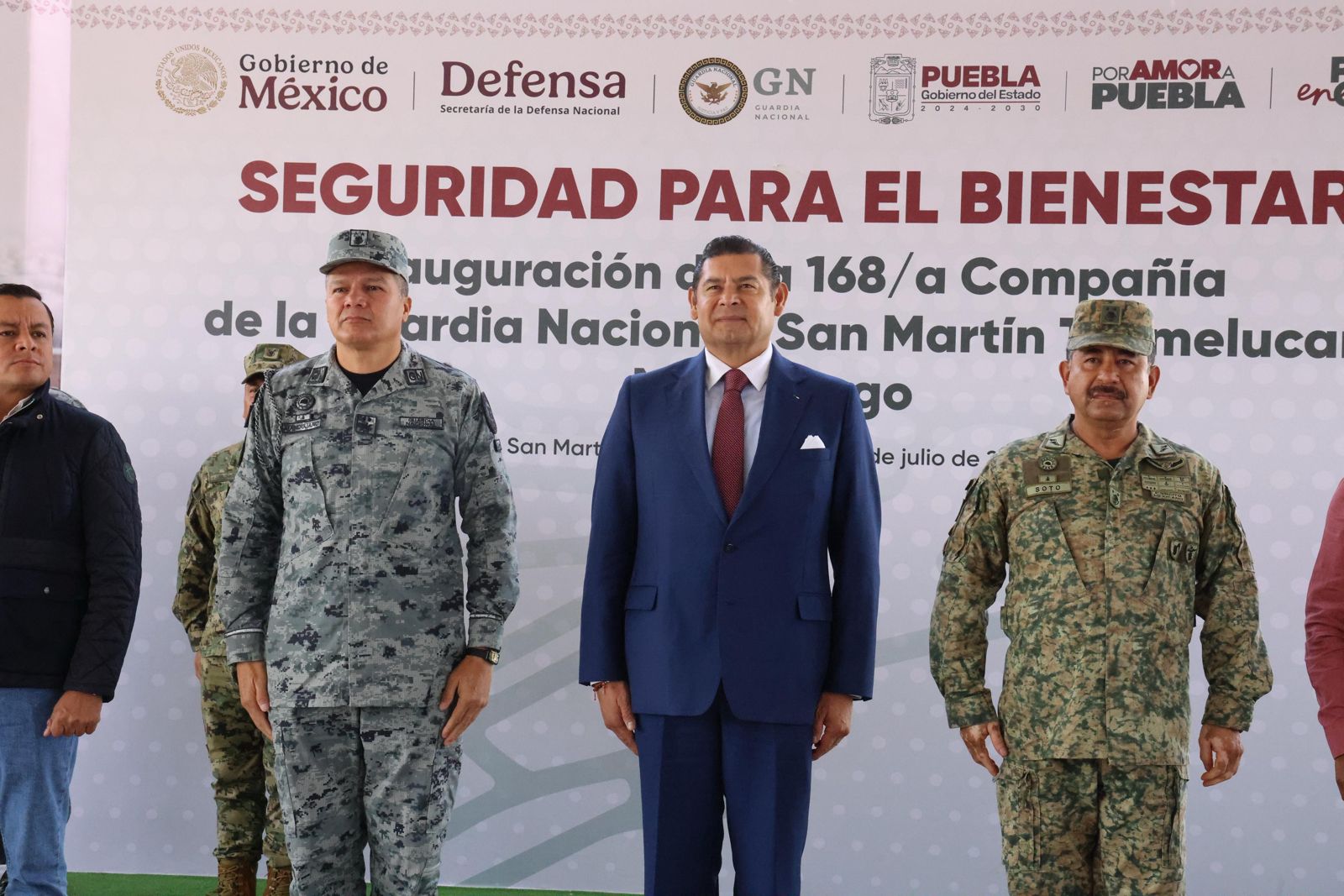 SAN MARTÍN TEXMELUCAN, Pue.- El gobernador de Puebla, Alejandro Armenta, en compañía del general de Brigada de Estado Mayor, Vicente Javier Mandujano Acevedo, Coordinador Estatal de la Guardia Nacional, encabezó la inauguración de la 168/a Compañía de la Guardia Nacional, que tendrá el objetivo de fortalecer la prevención y salvaguardar la integridad de los ciudadanos.