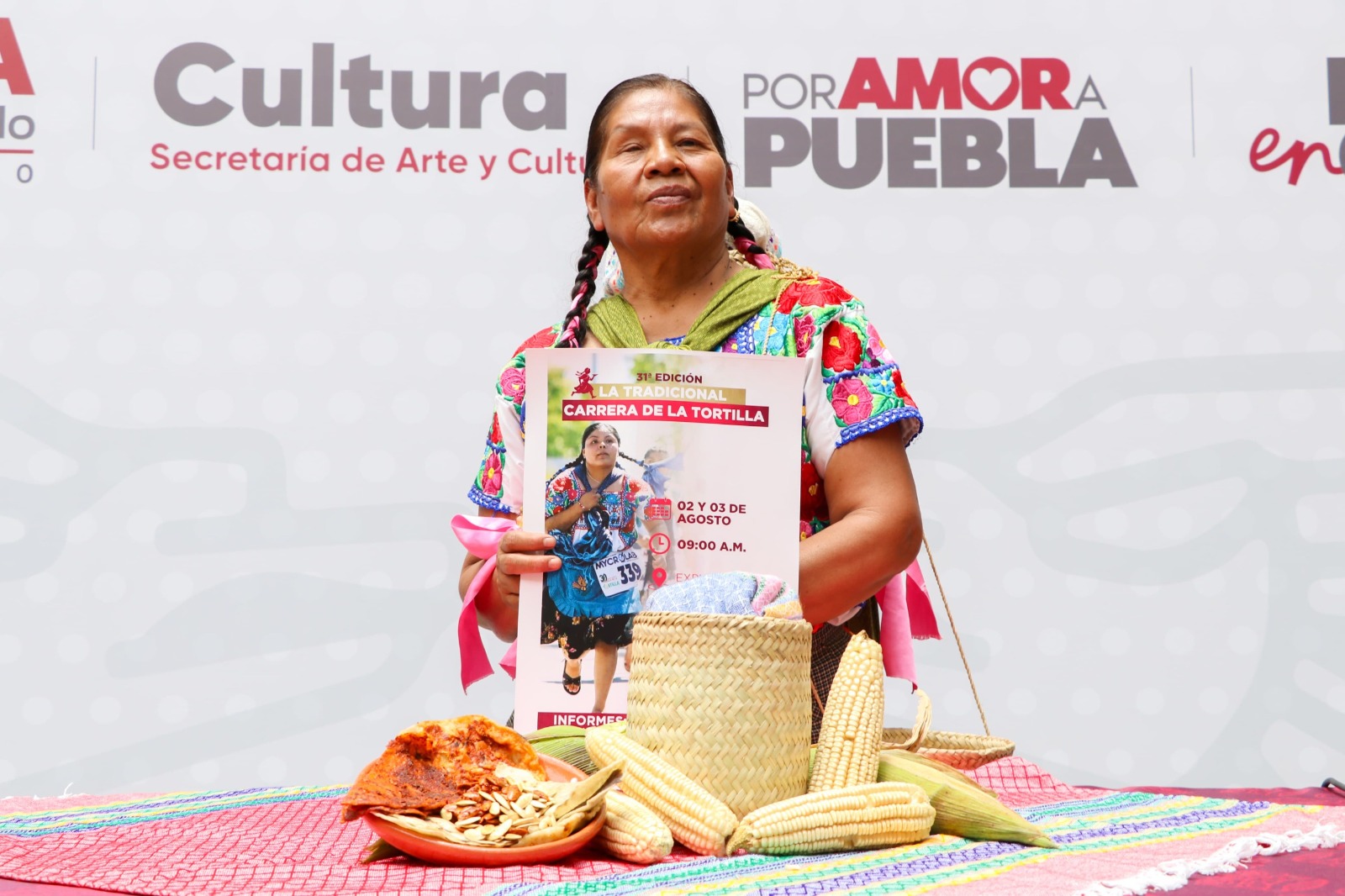 En rueda de prensa, la directora de Fomento Cultural y Artístico de la dependencia, Natividad Alarcón Ortega, en representación de Alejandra Pacheco Mex, secretaria de Arte y Cultura del Estado, mencionó que la Carrera de la Tortilla es un homenaje a las mujeres indígenas nahuas, mismas que con su trabajo reflejan la fuerza de las raíces de la entidad, así como siglos de tradición, conocimiento y orgullo de su identidad cultural.