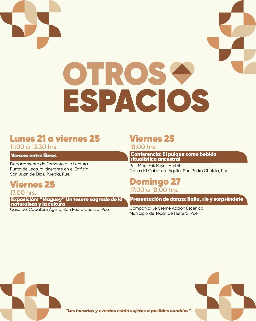 - Del 25 al 27 de julio, participarán los municipios de San Nicolás de los Ranchos y Acajete, así como diversos artistas locales a fin de promover la convivencia.