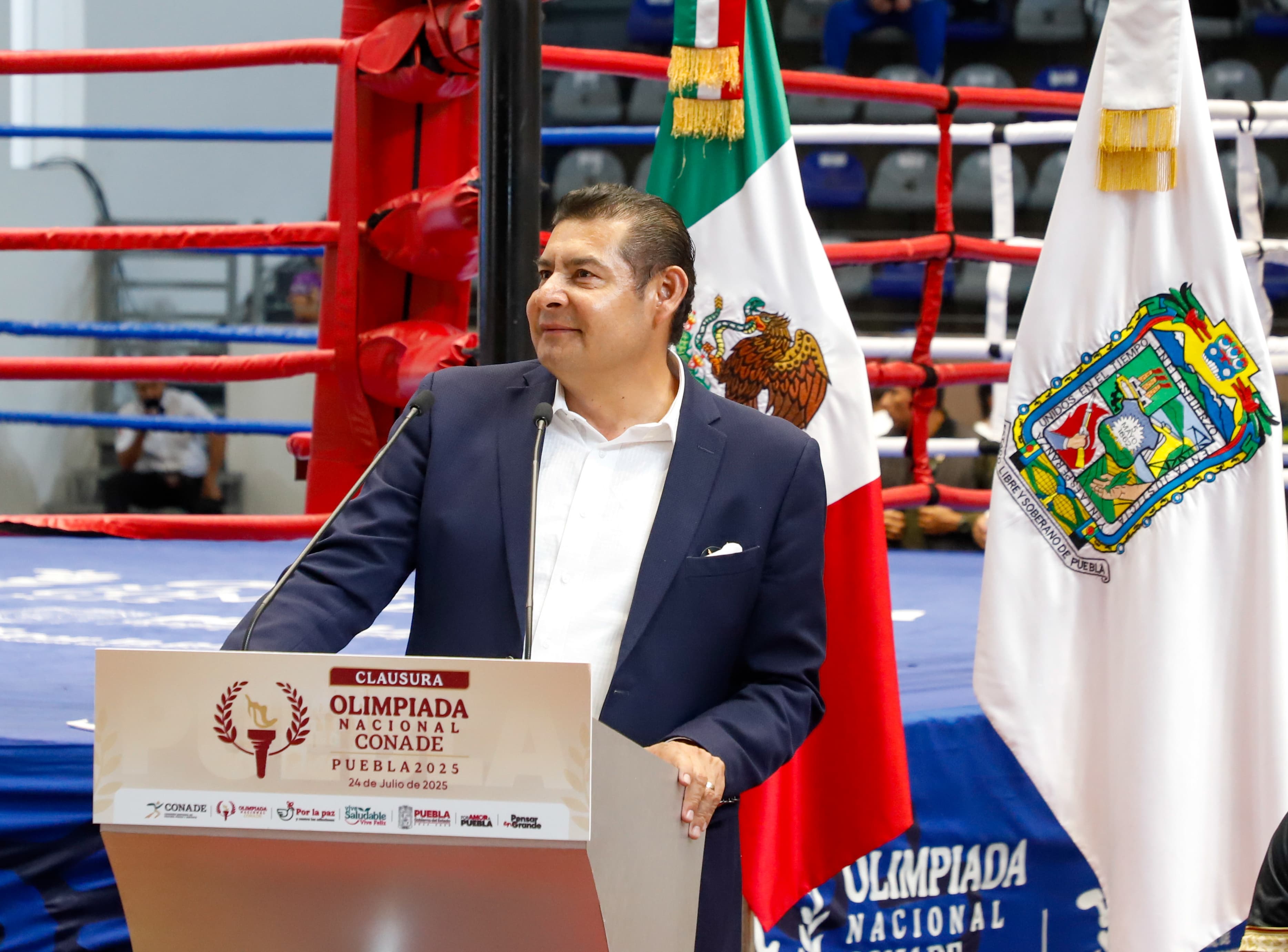 CIUDAD DE PUEBLA, Pue.— Con la ceremonia de premiación de boxeo, encabezada por el director de la Comisión Nacional de Cultura Física y Deporte, Rommel Pacheco y el gobernador Alejandro Armenta, concluyó la Olimpiada Nacional CONADE 2025 en Puebla. El evento reunió a representantes de las 32 entidades del país y consolidó a Puebla como símbolo del deporte como motor de bienestar y seguridad.