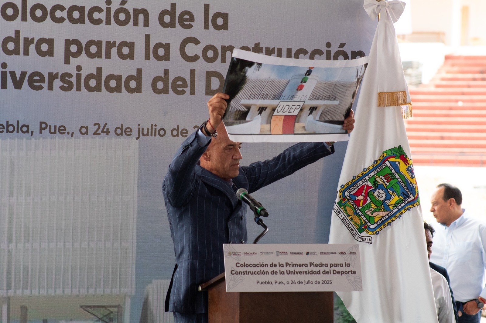 CIUDAD DE PUEBLA.- En el marco de la colocación de la primera piedra de la Universidad del Deporte del Estado de Puebla (UDEP), el rector José Luis Sánchez Solá reconoció a las y los directores de la UDEP que destacan por ser atletas de alto rendimiento y por comprometerse con la juventud que busca cumplir sus sueños. “Estoy muy agradecido por contar con el apoyo de grandes atletas, así como de todo el personal administrativo, quienes han hecho posible arrancar con este sueño que busca generar bienestar con seguridad. Igualmente valoro a las y los titulares de las secretarías de Infraestructura, Deporte y Educación pues son el pilar del proyecto que se edifica en el Estadio Olímpico Ignacio Zaragoza”.