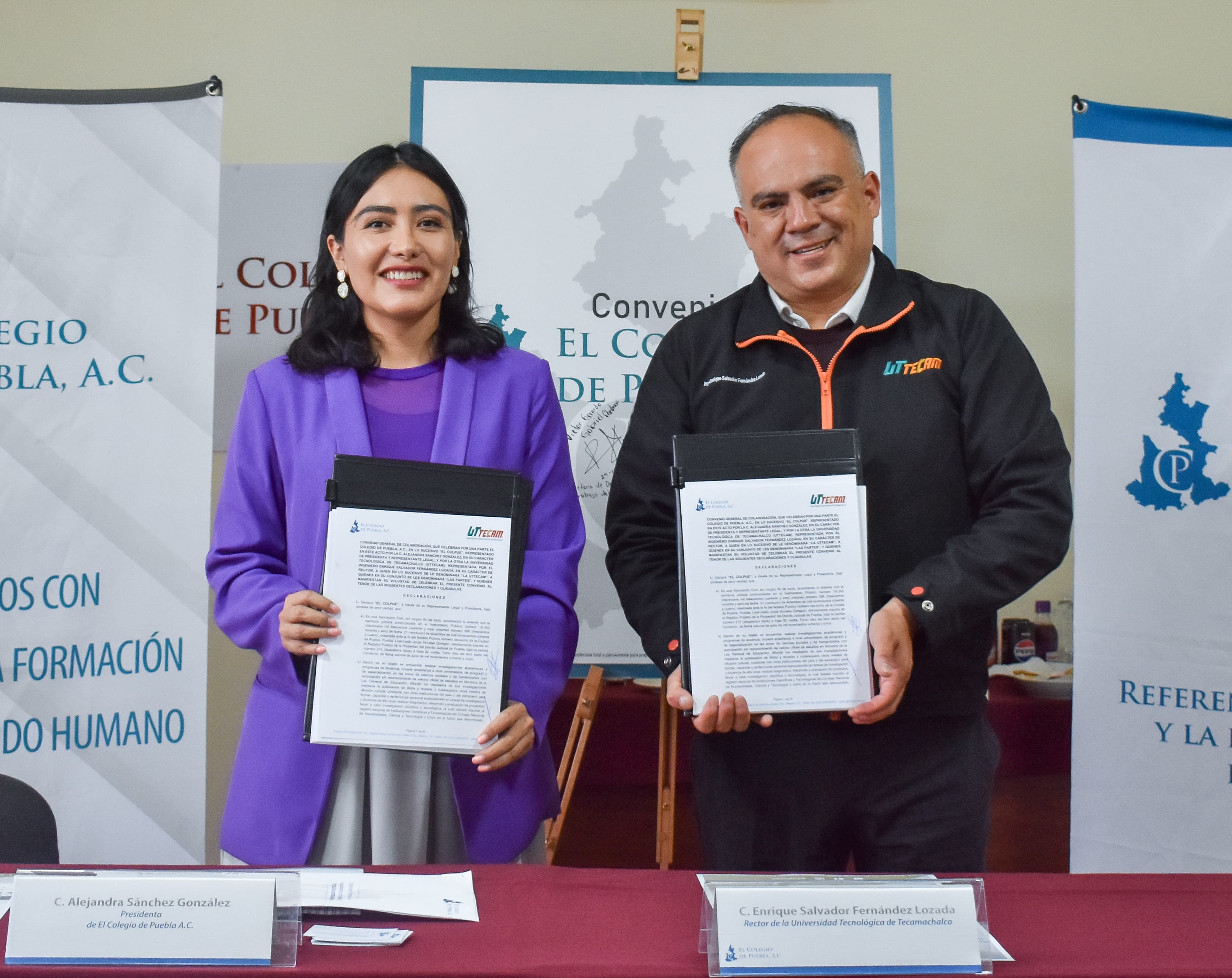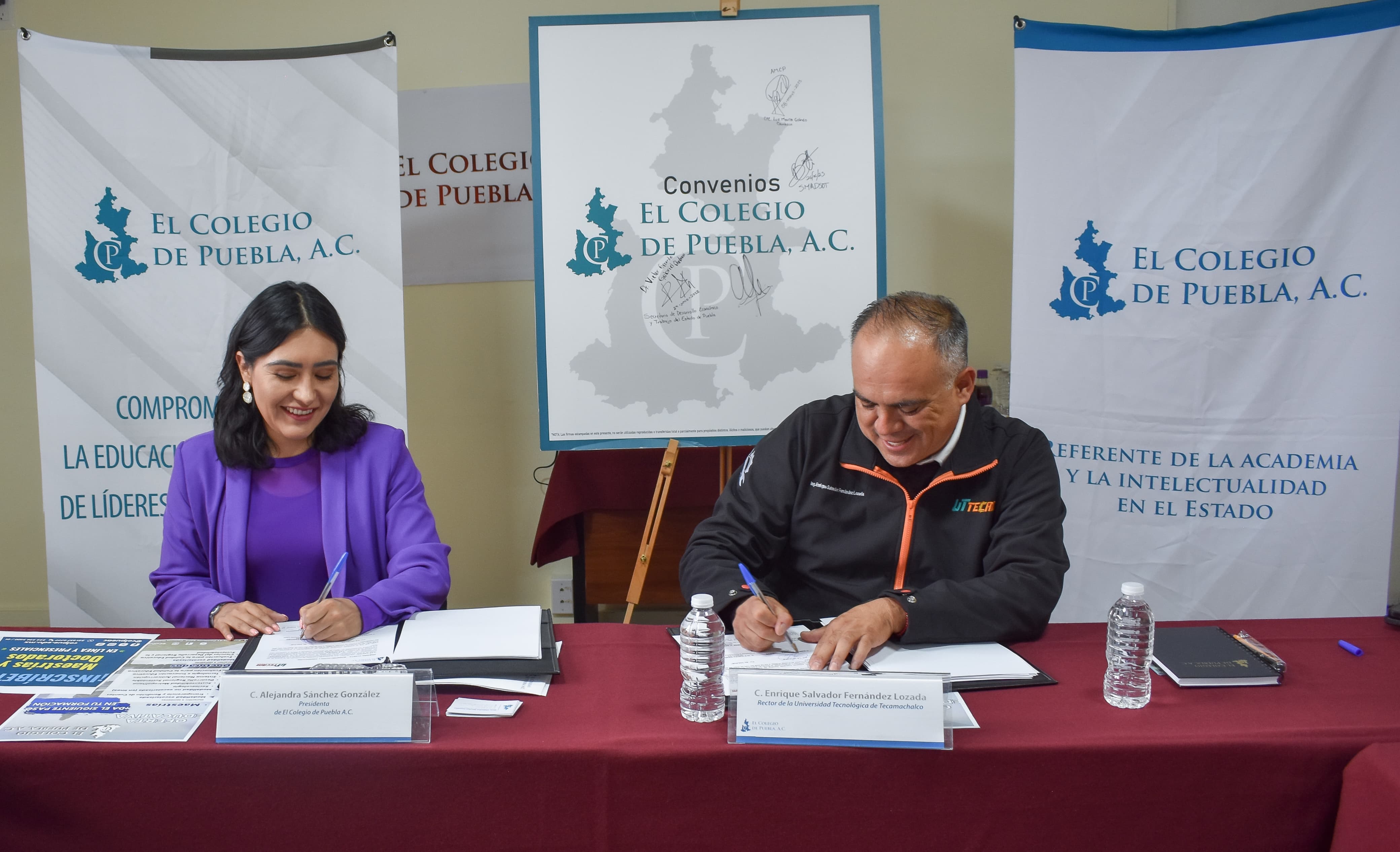 La firma del acuerdo fue encabezada por la presidenta del Colegio de Puebla, A.C., Alejandra Sánchez González y el rector de UTTECAM, Salvador Fernández; el cual, establece una alianza estratégica sustentada en valores, con atención prioritaria al crecimiento académico, científico y tecnológico al servicio del bienestar social. Las autoridades destacan la importancia de establecer vínculos que respondan a los desafíos actuales del sector educativo y favorezcan una formación integral, inclusiva y de calidad.