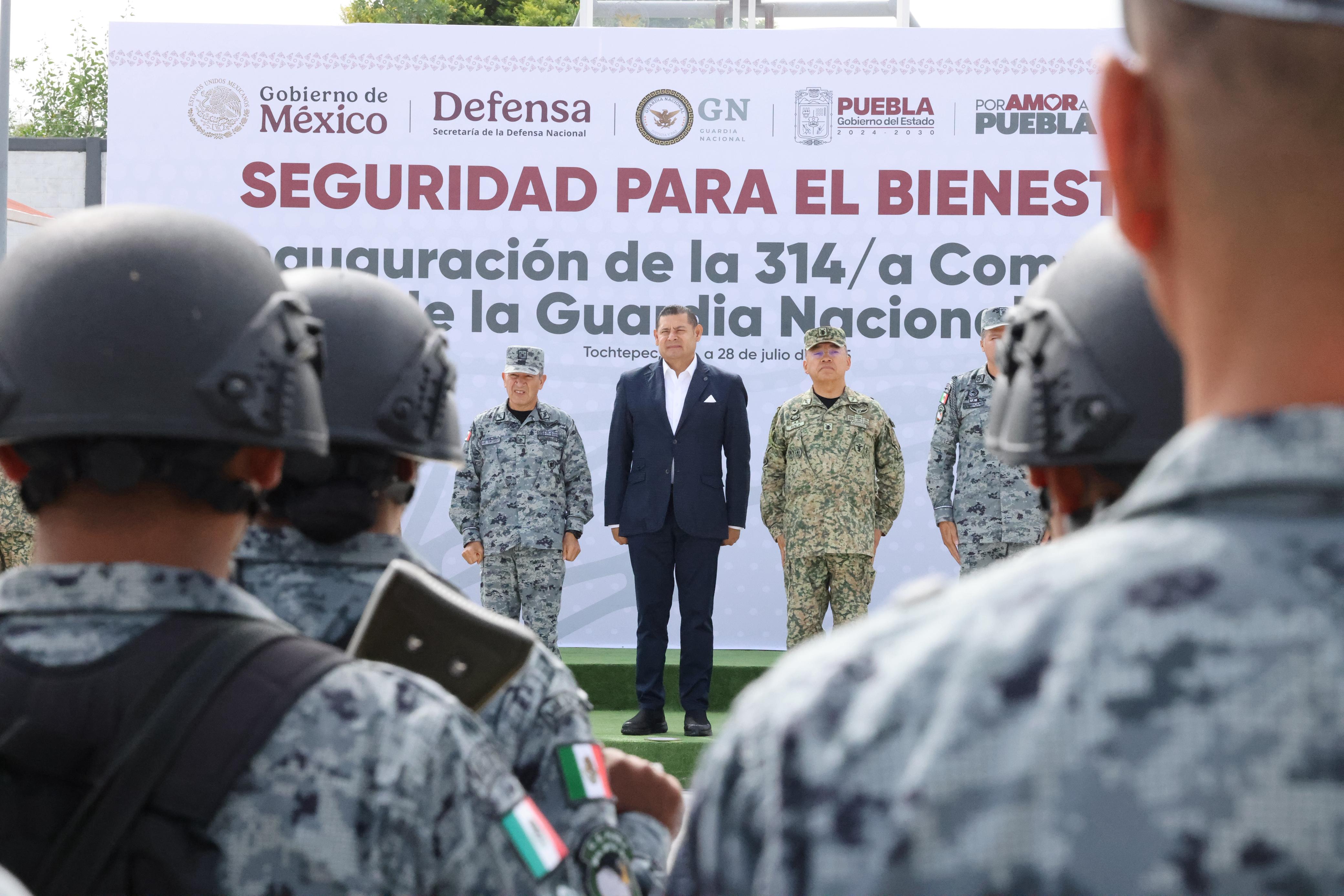 TOCHTEPEC, Pue.– En un acto de unidad y compromiso por la seguridad del país, el gobernador constitucional del Estado de Puebla, Alejandro Armenta, estuvo presente en la inauguración de la 314ª Compañía de la Guardia Nacional, junto a autoridades federales, estatales y municipales. Esta nueva instalación representa un avance estratégico dentro del Plan Nacional de Paz y Seguridad, instruido por la presidenta de México, Claudia Sheinbaum, quien funge como Comandanta Suprema de las Fuerzas Armadas.