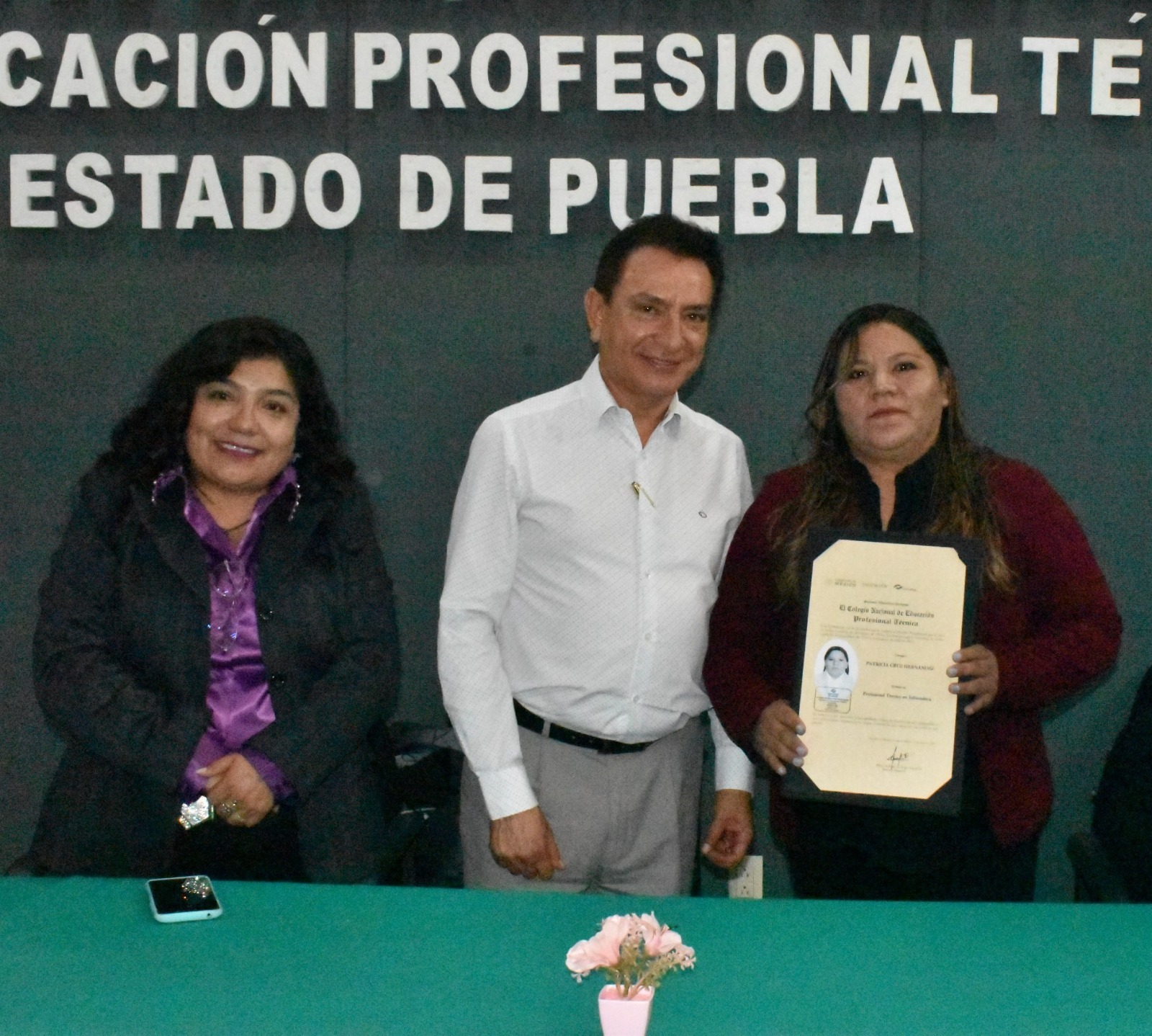 De esta forma, al entregar el título que acredita como Profesional Técnico en Informática a Patricia Cruz Hernández, quien concluyó sus estudios hace más de dos décadas en el Plantel Puebla III, Martínez Martínez señaló que hay casos de exalumnas y exalumnos que por diversos motivos, solicitaron sus documentos mucho tiempo después de haber terminado sus trayectos académicos y actualmente, los requieren para mejorar sus condiciones laborales.