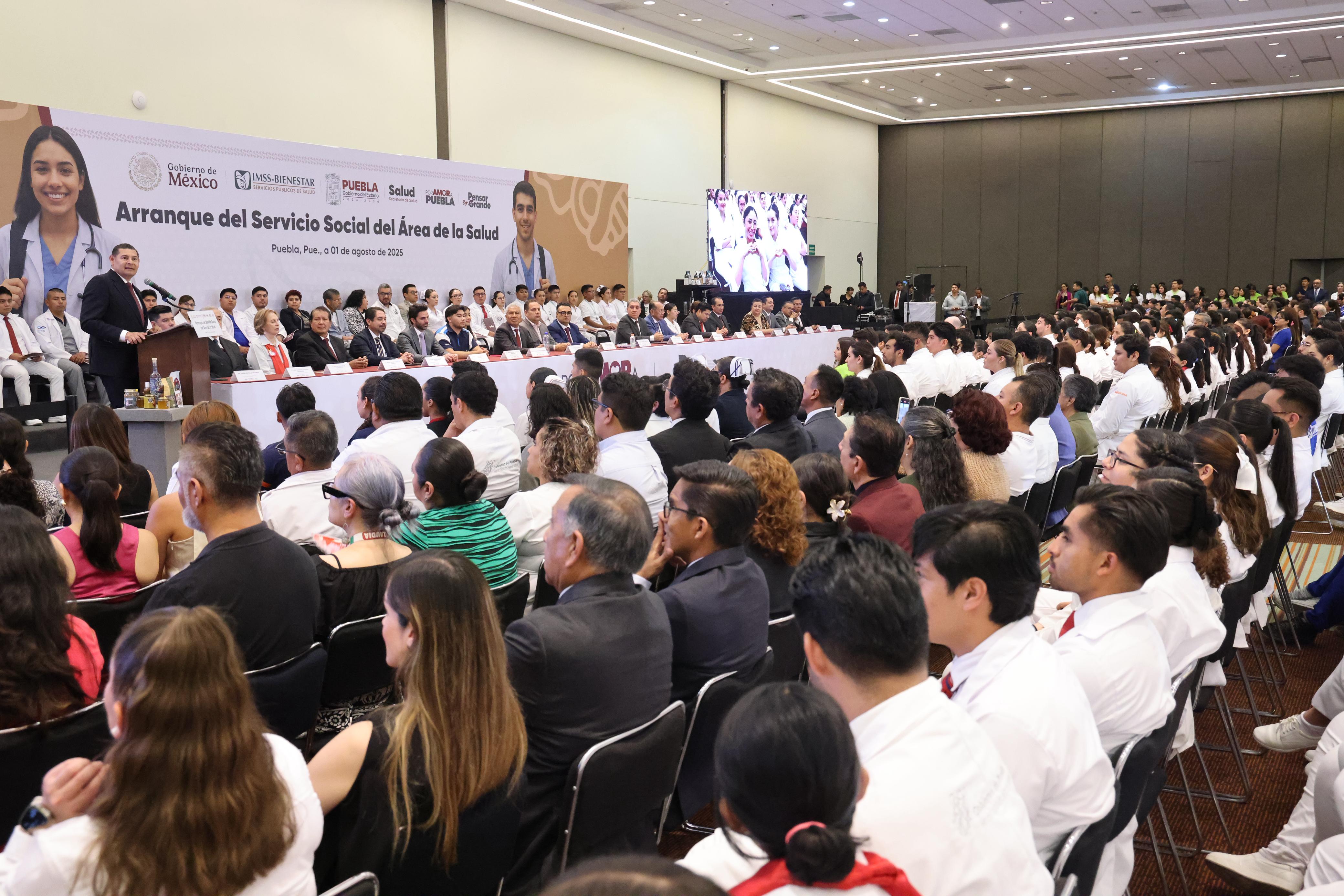CIUDAD DE PUEBLA, Pue.- El gobernador de Puebla, Alejandro Armenta, encabezó el arranque oficial del Servicio Social del Sector Salud, donde más de 4 mil estudiantes de más de 150 instituciones educativas iniciarán su formación profesional en hospitales y unidades médicas de todo el estado, gracias al convenio entre el Gobierno del Estado y el IMSS-Bienestar.