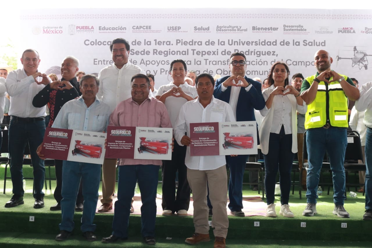 TEPEXI DE RODRÍGUEZ, Pue.- Con la certeza de que los recursos económicos se aplican para bienestar del pueblo, el gobierno del estado que encabeza Alejandro Armenta, entregó paquetes de recicladoras PET y composteadoras de residuos orgánicos para la recuperación de hasta 12 mil 480 toneladas de plásticos al año y 8 mil 740 toneladas de materias orgánicas generadas en mercados municipales.