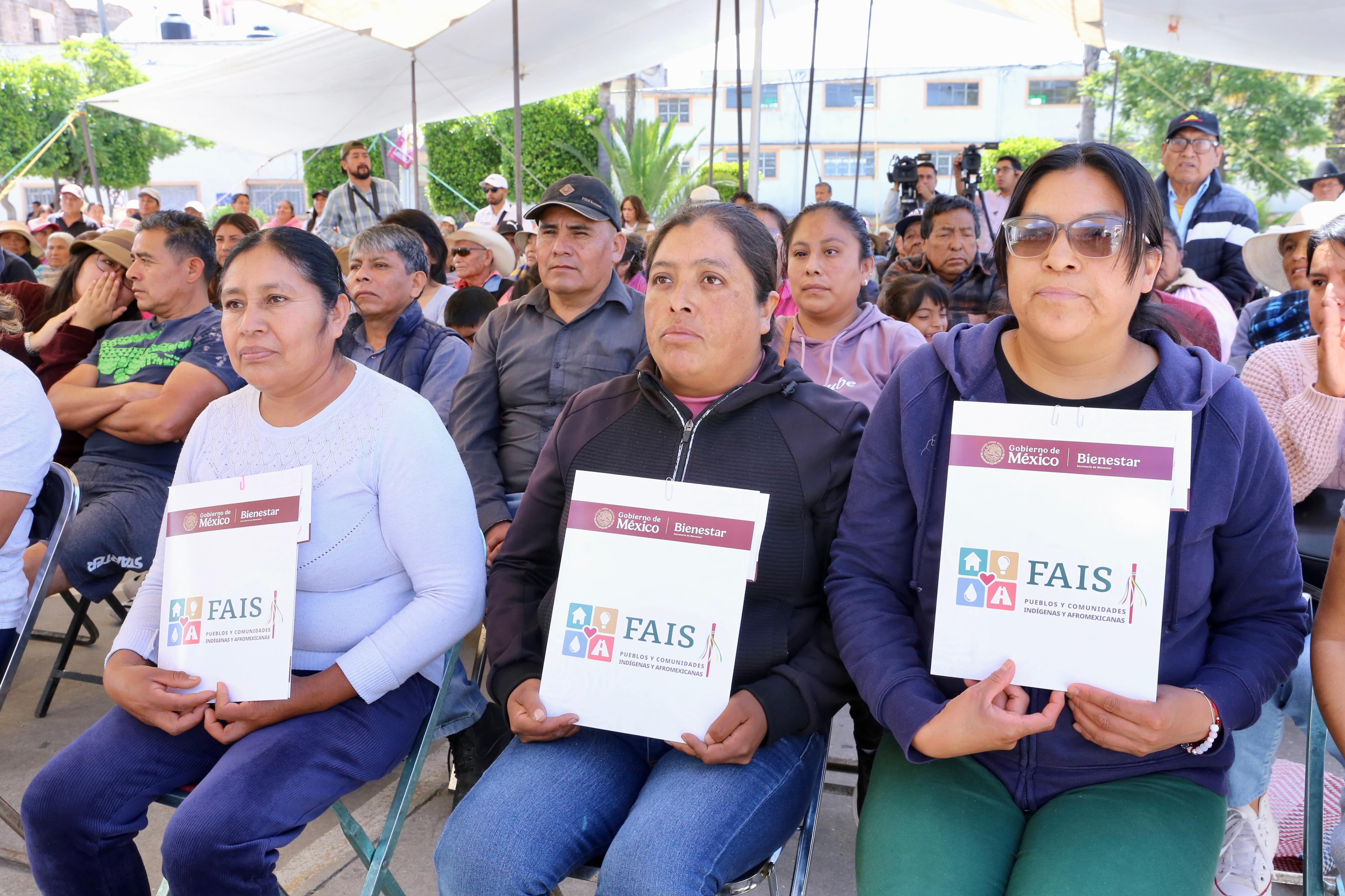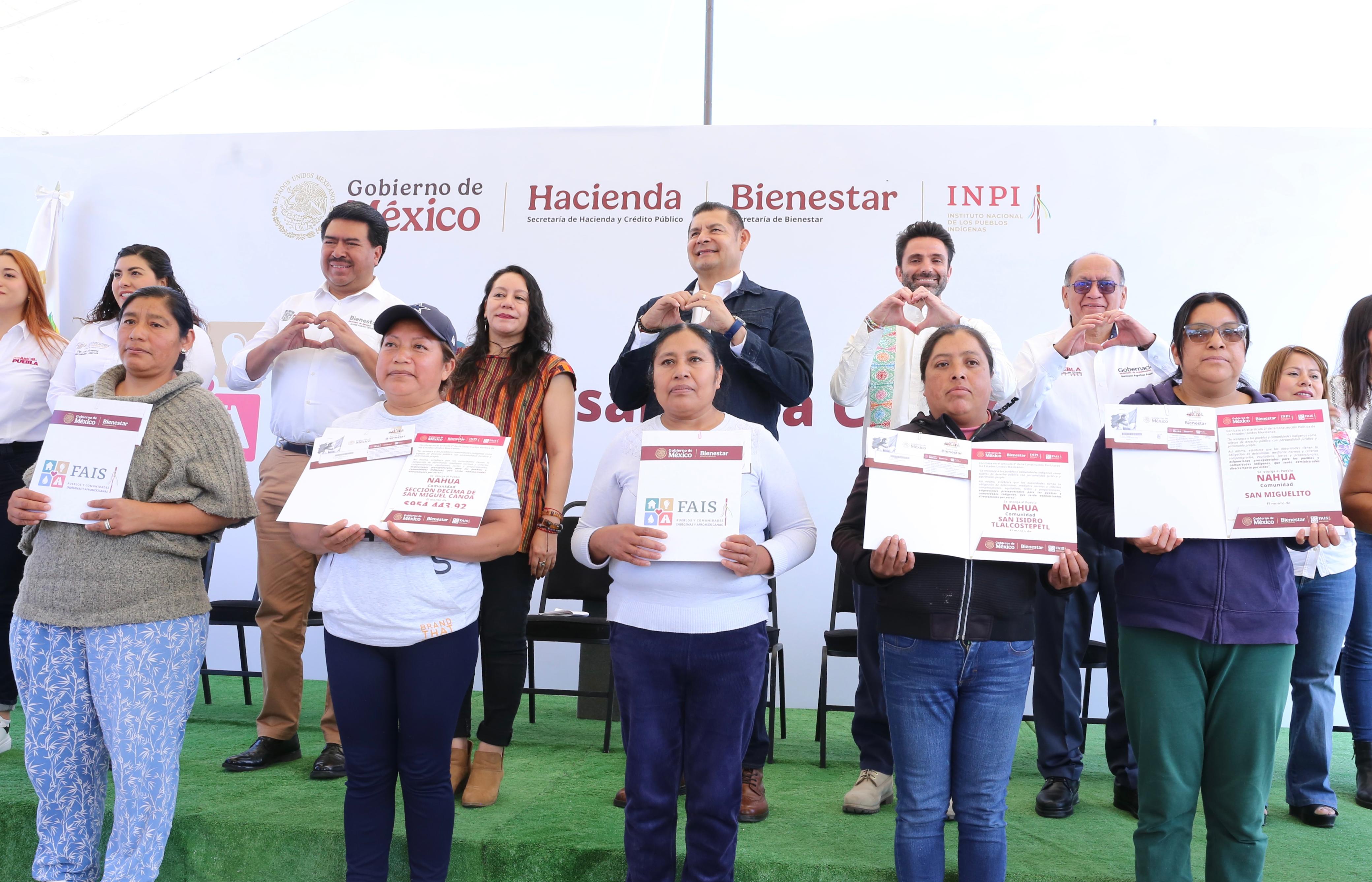 CIUDAD DE PUEBLA, Pue.- Al entregar tarjetas del Fondo de Aportaciones para la Infraestructura Social de los Pueblos y Comunidades Indígenas y Afromexicanas (FAISPIAM), en la junta Auxiliar de San Miguel Canoa, población indígena ubicada en la capital de Puebla, la directora General de Alimentación para el Bienestar del Gobierno de México, María Luisa Albores, destacó que este acto es un hecho histórico que reconoce sus derechos con recursos de beneficio social.