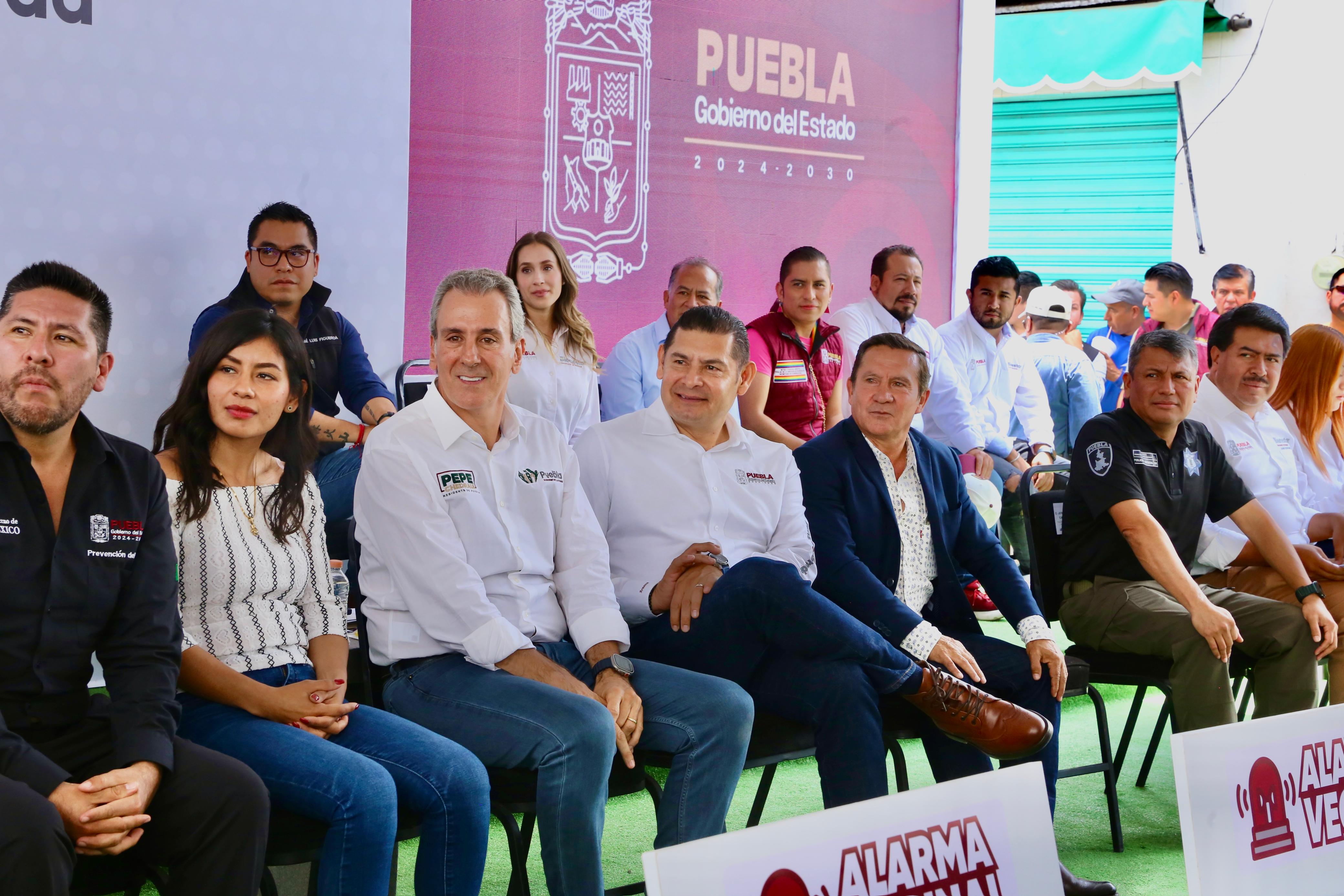 -El gobernador de Puebla, Alejandro Armenta, encabezó la entrega de 100 alarmas vecinales en la junta auxiliar San Felipe Hueyotlipan.