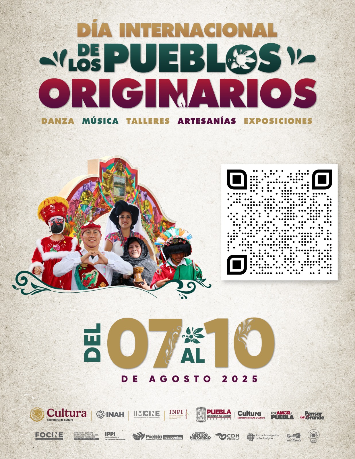 CIUDAD DE PUEBLA, Pue.- Para fomentar la paz, inclusión y visibilización de los Pueblos Originarios, el Gobierno del Estado de Puebla, mediante la Secretaría de Arte y Cultura, realizará un programa de actividades con danza, música, proyecciones de cine, conversatorios, talleres y exposiciones que tendrán lugar del jueves 07 al domingo 10 de agosto, y será con entrada libre para el público en general.