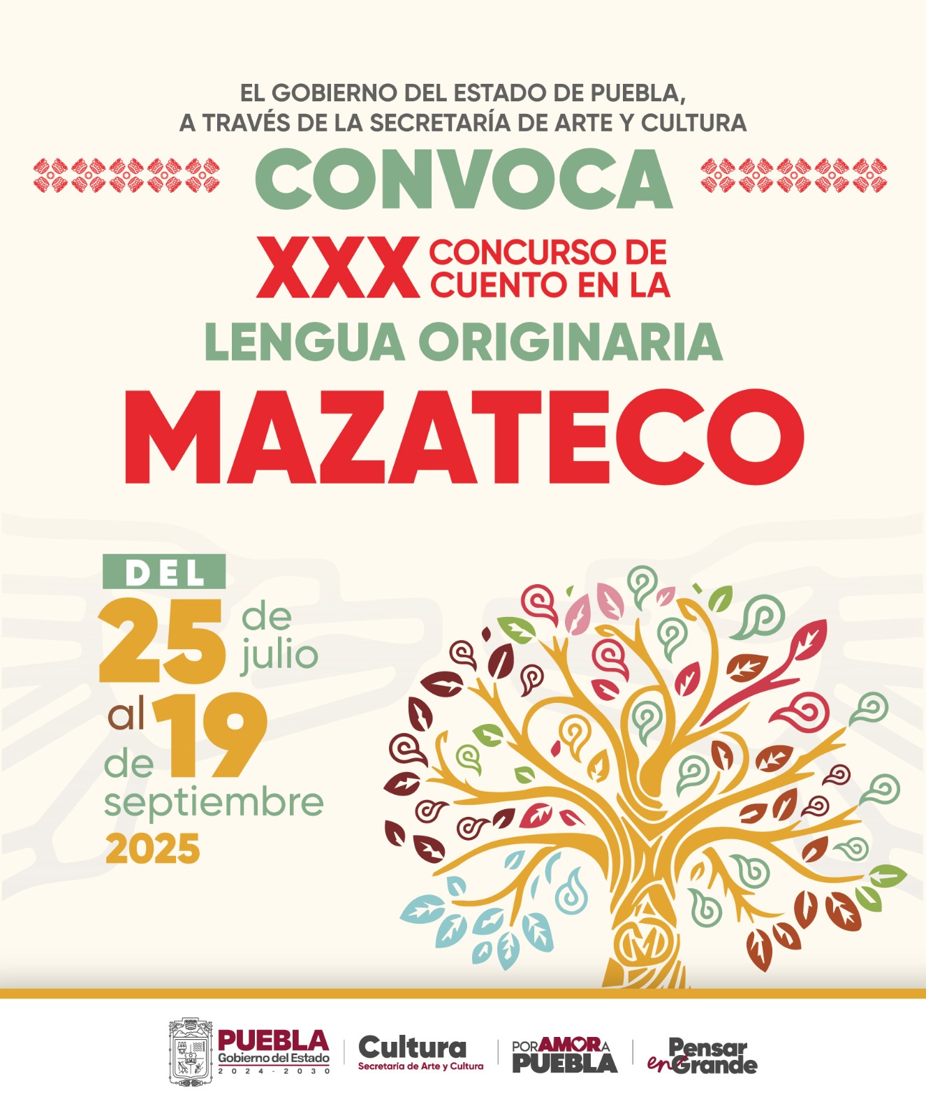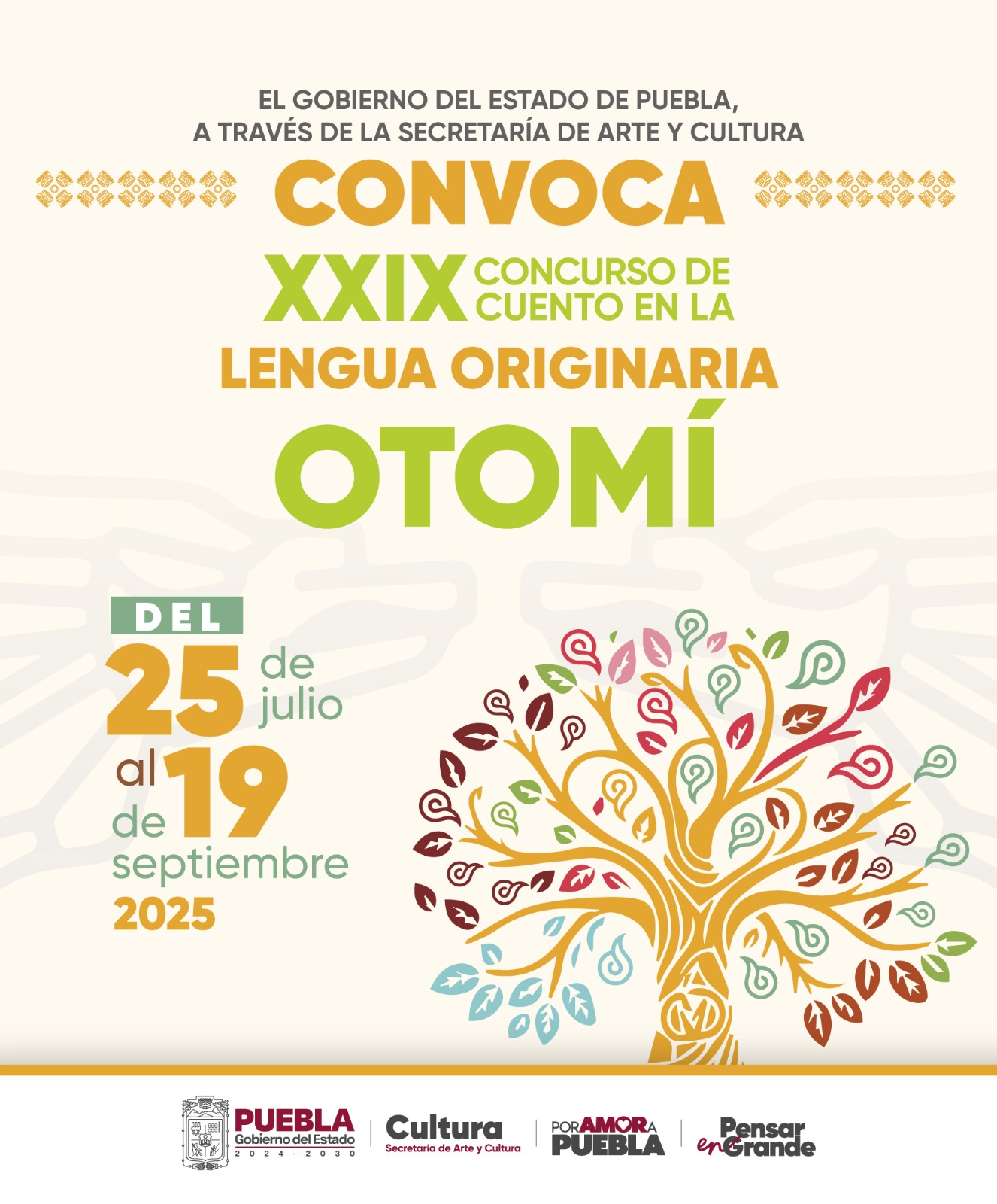 Entre ellos se recibirán cuentos originales e inéditos en idiomas hablados en la entidad, como náhuatl, mixteco, otomí, tepehua, totonaco, popoloca, mazateco y mixteco, los cuales deberán contar con una extensión de entre 3 y 15 cuartillas y una traducción al español. Al ganador o ganadora de cada una de las lenguas participantes será premiado con 12 mil pesos.