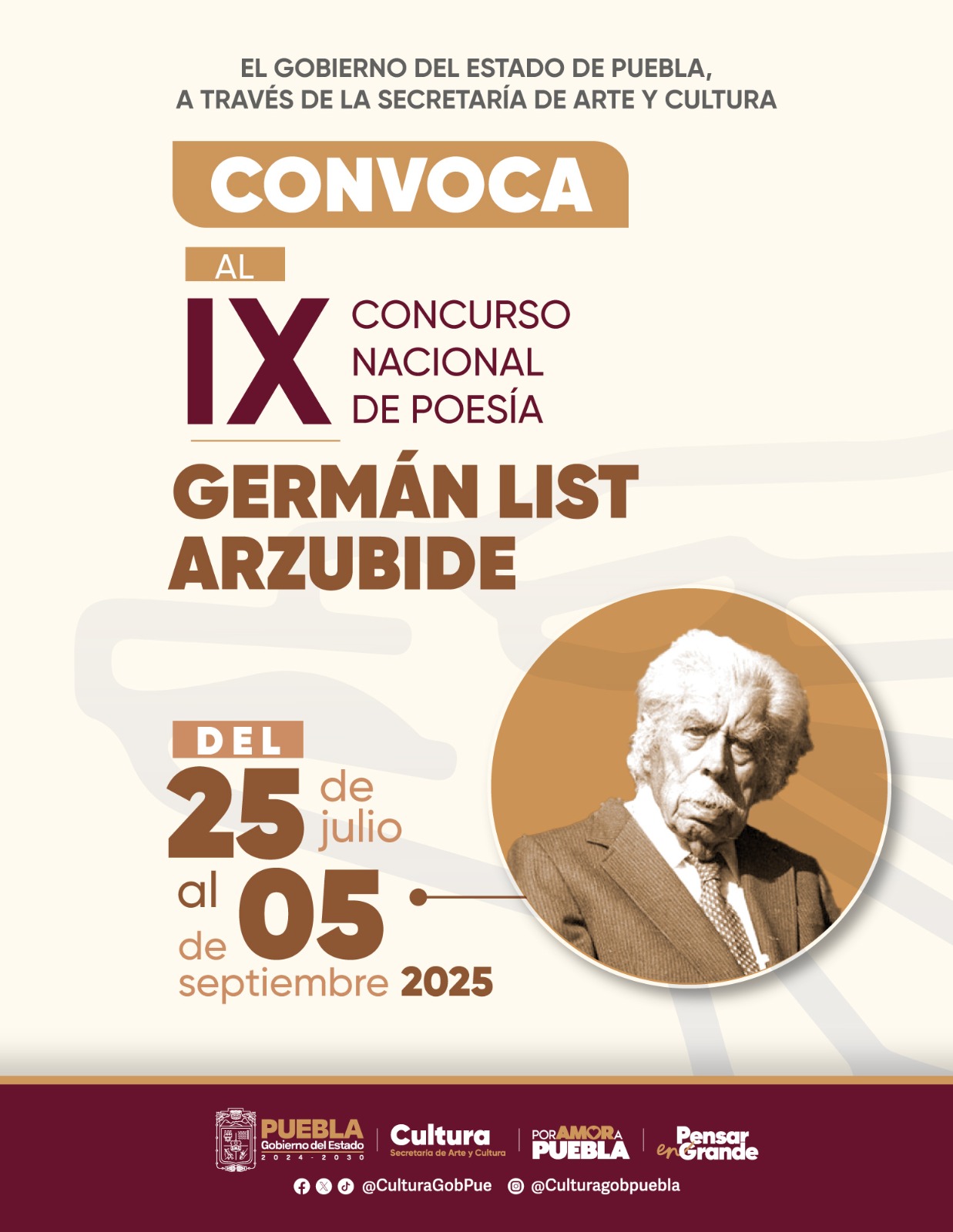 CIUDAD DE PUEBLA, Pue.- El Gobierno del Estado de Puebla, encabezado por Alejandro Armenta, a través de la Secretaría de Arte y Cultura, abrió once concursos literarios para obras escritas en español y lenguas originarias, con el propósito de impulsar la confianza y reconocimiento del talento de escritores poblanos y nacionales, quienes podrán postular sus trabajos hasta septiembre del presente año.