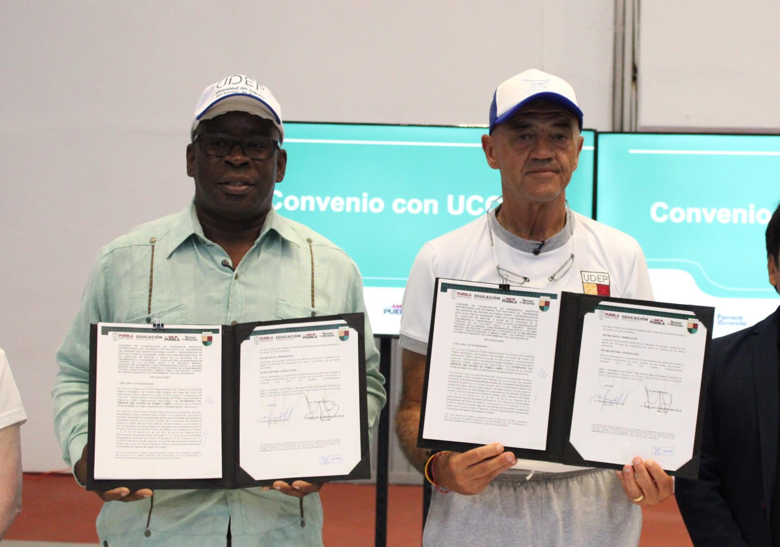 CIUDAD DE PUEBLA.- En una colaboración internacional por fomentar el desarrollo integral e intercambio cultural, así como cimentar la construcción de la paz por medio del deporte, el Gobierno que encabeza Alejandro Armenta, signó un convenio de colaboración a través de la Universidad del Deporte del Estado de Puebla (UDEP), que dirige José Luis Sánchez Sola y la Universidad de Ciencias de la Cultura Física y el Deporte “Manuel Fajardo” (UCCFD) de Cuba, que lidera Silvano Merced Len.