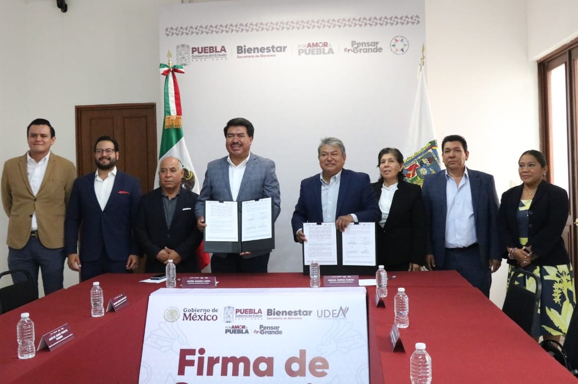 CIUDAD DE PUEBLA, Pue.- El Gobierno del Estado de Puebla, comprometido con el desarrollo social y educativo del estado, suscribió a través del secretario de Bienestar, Javier Aquino Limón, un convenio de colaboración con la Universidad Los Ángeles y su rector Miguel Muñoz García. Por Amor a Puebla, esta alianza estratégica refuerza el compromiso de la administración humanista encabezada por el gobernador Alejandro Armenta, con la visión de Pensar en Grande.