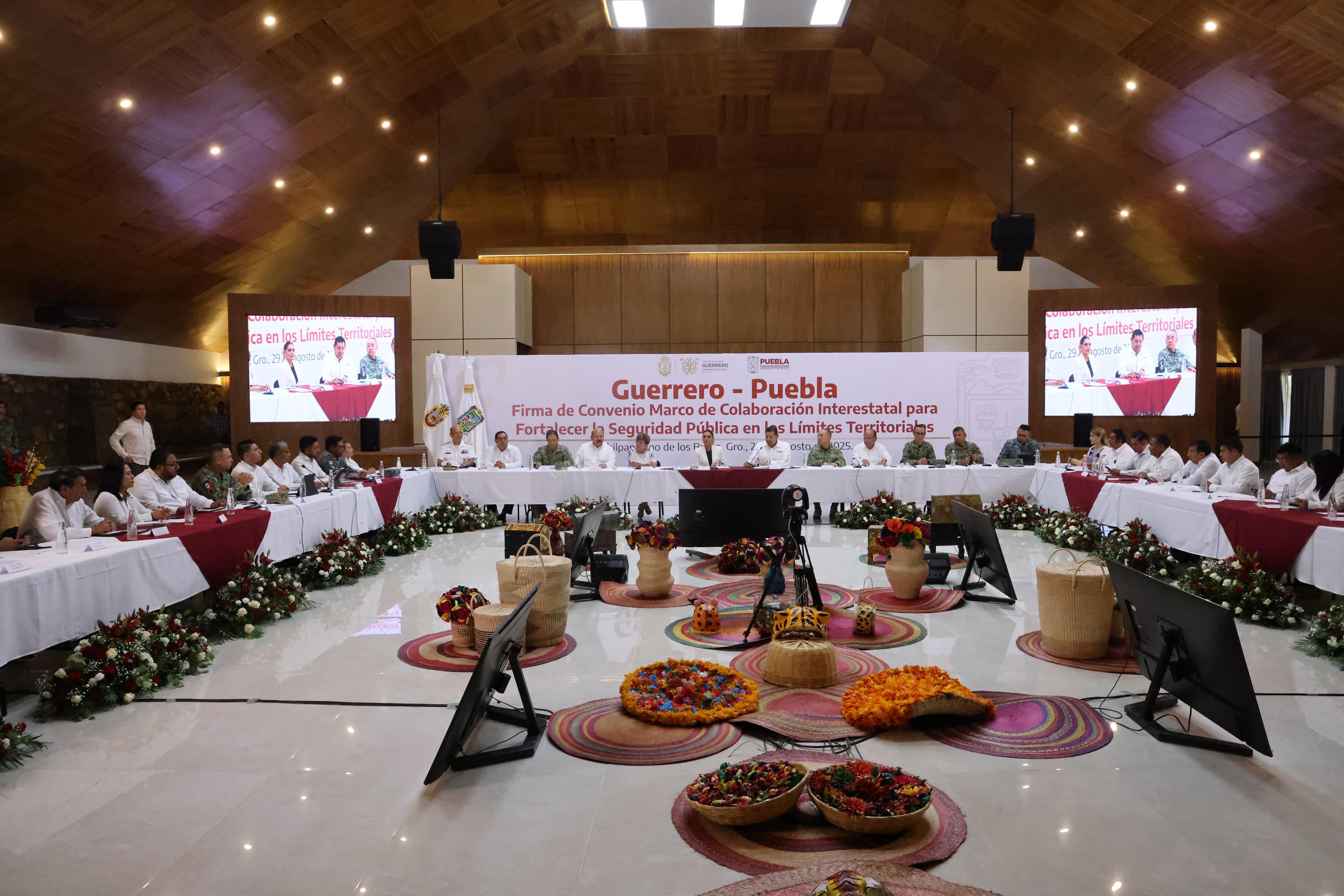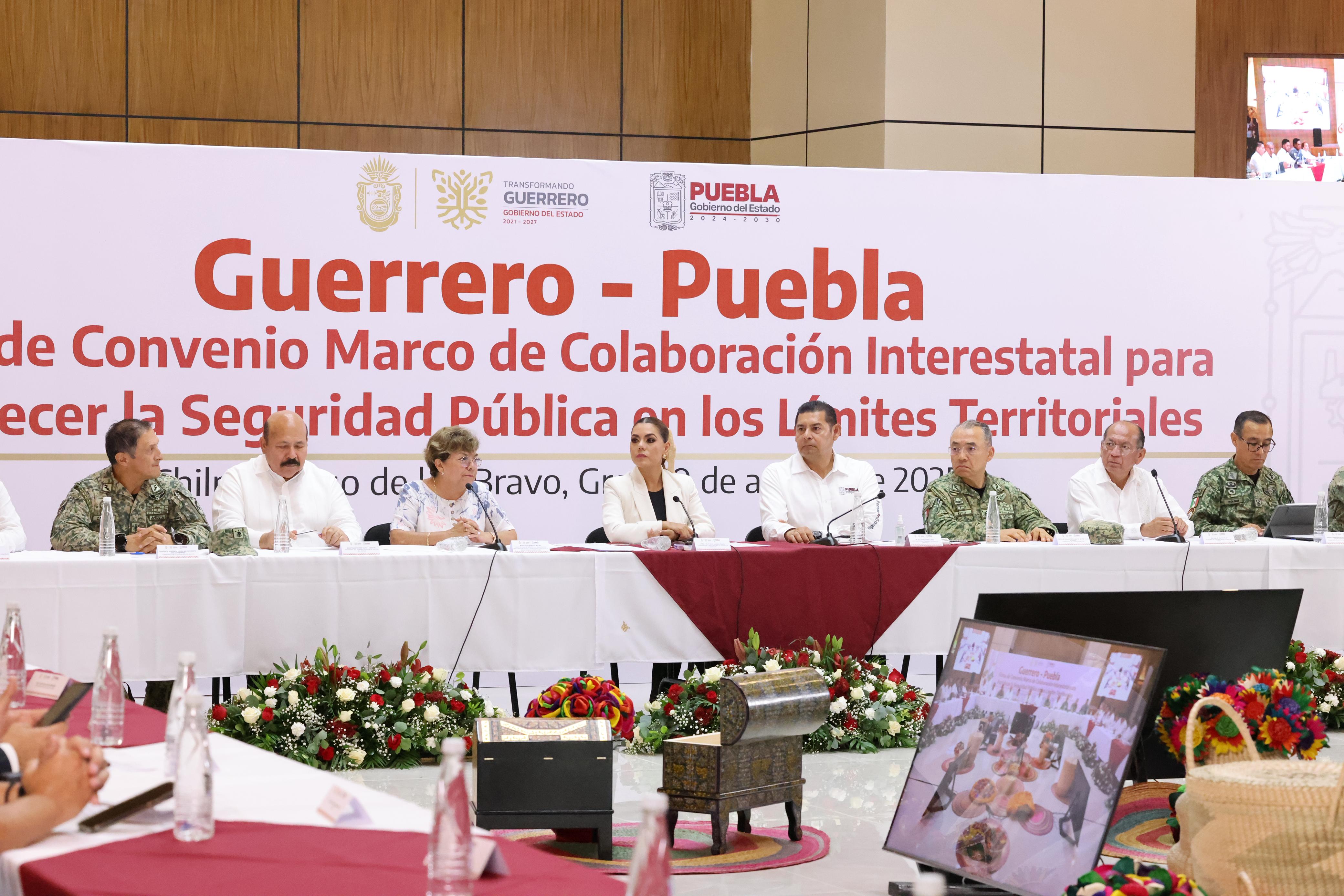 CHILPANCINGO, Gro.- Con la firma del Convenio Marco de Colaboración Interestatal para fortalecer la Seguridad Pública en los Límites Territoriales, los gobiernos de Puebla y Guerrero dan un paso decisivo hacia la construcción de paz y confianza ciudadana. Este acuerdo consolida la estrategia del gobernador Alejandro Armenta, quien a sólo 259 días de haber iniciado su gestión, ha logrado blindar a la entidad mediante convenios de seguridad con la mayoría de los estados vecinos.