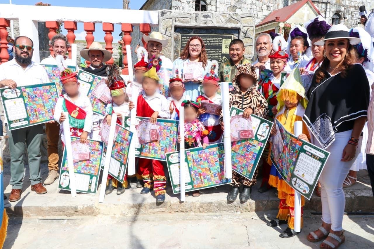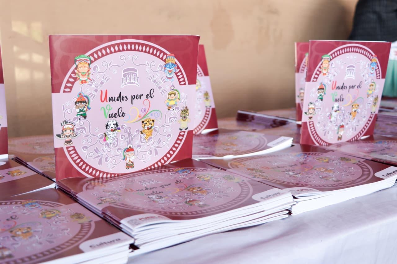 Además, la dependencia realizó la presentación y distribución de material lúdico sobre la danza, consistente en un cuadernillo titulado “Unidos por el vuelo”, un memorama, la versión de un juego de serpientes y escaleras, y un mapa de geolocalización de los centros ceremoniales de la Danza de Voladores. Estos materiales fueron diseñados para fortalecer los procesos de enseñanza comunitaria, sensibilizar a la población sobre el valor de esta práctica cultural y garantizar su continuidad en el tiempo.