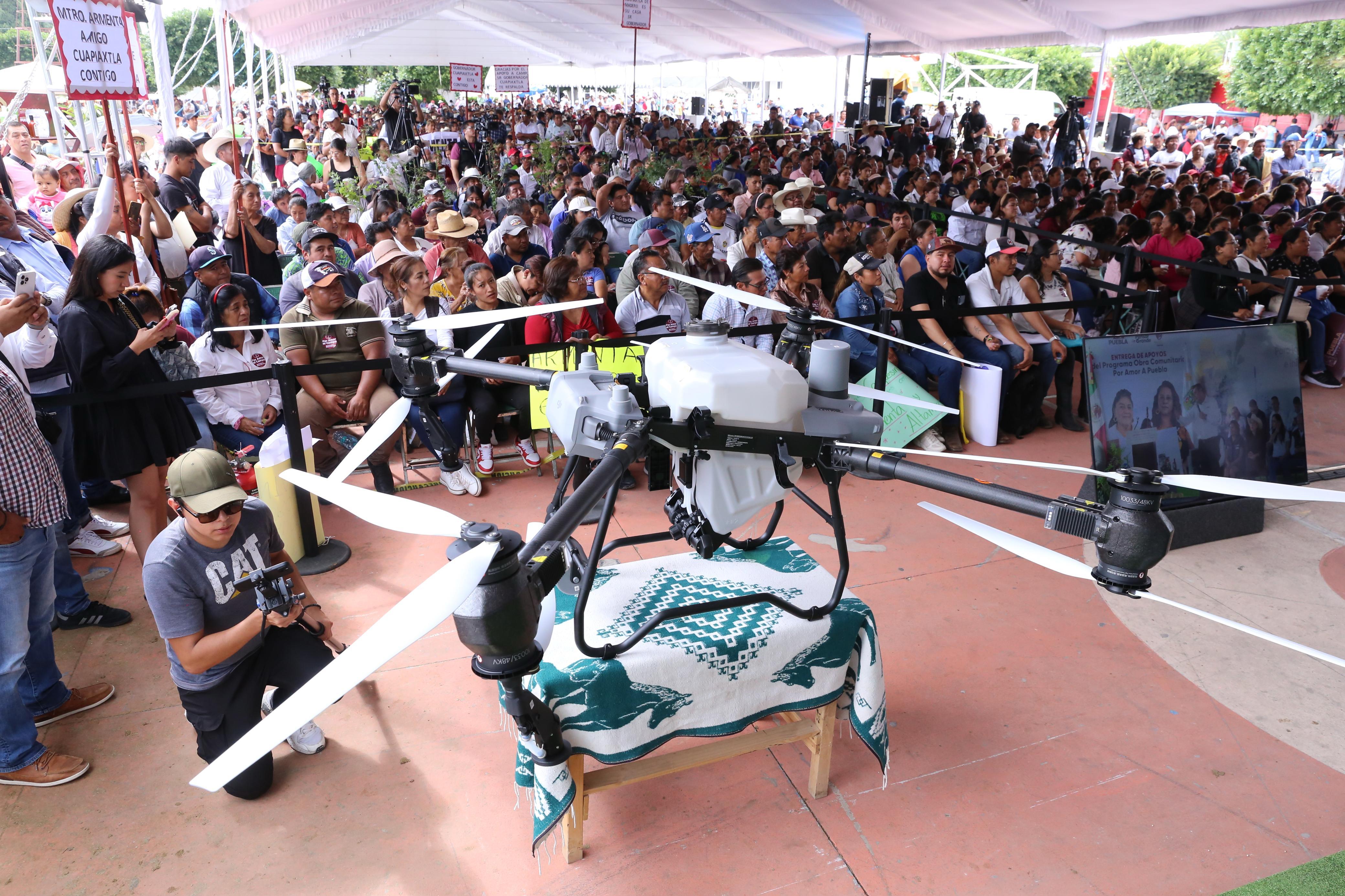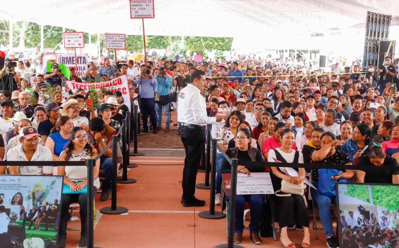 CUAPIAXTLA, Pue.- En la explanada de la presidencia municipal, el gobernador Alejandro Armenta encabezó la entrega de apoyos del programa Por Amor a Puebla y la distribución de equipos para la transformación del campo poblano. Con la participación de productoras, productores y autoridades comunitarias, se fortaleció el compromiso de dignificar el trabajo rural y garantizar la soberanía alimentaria en todo el estado.