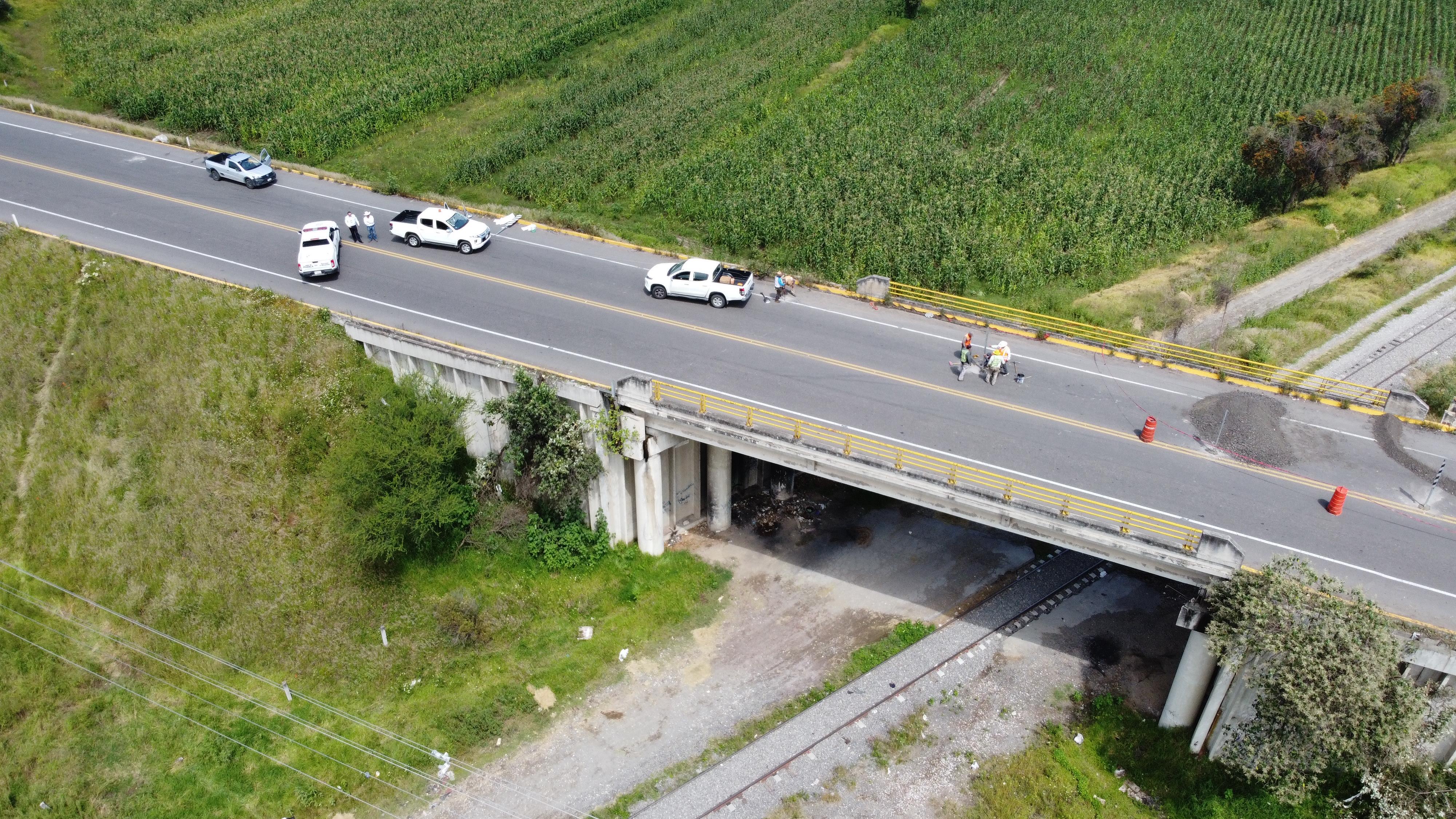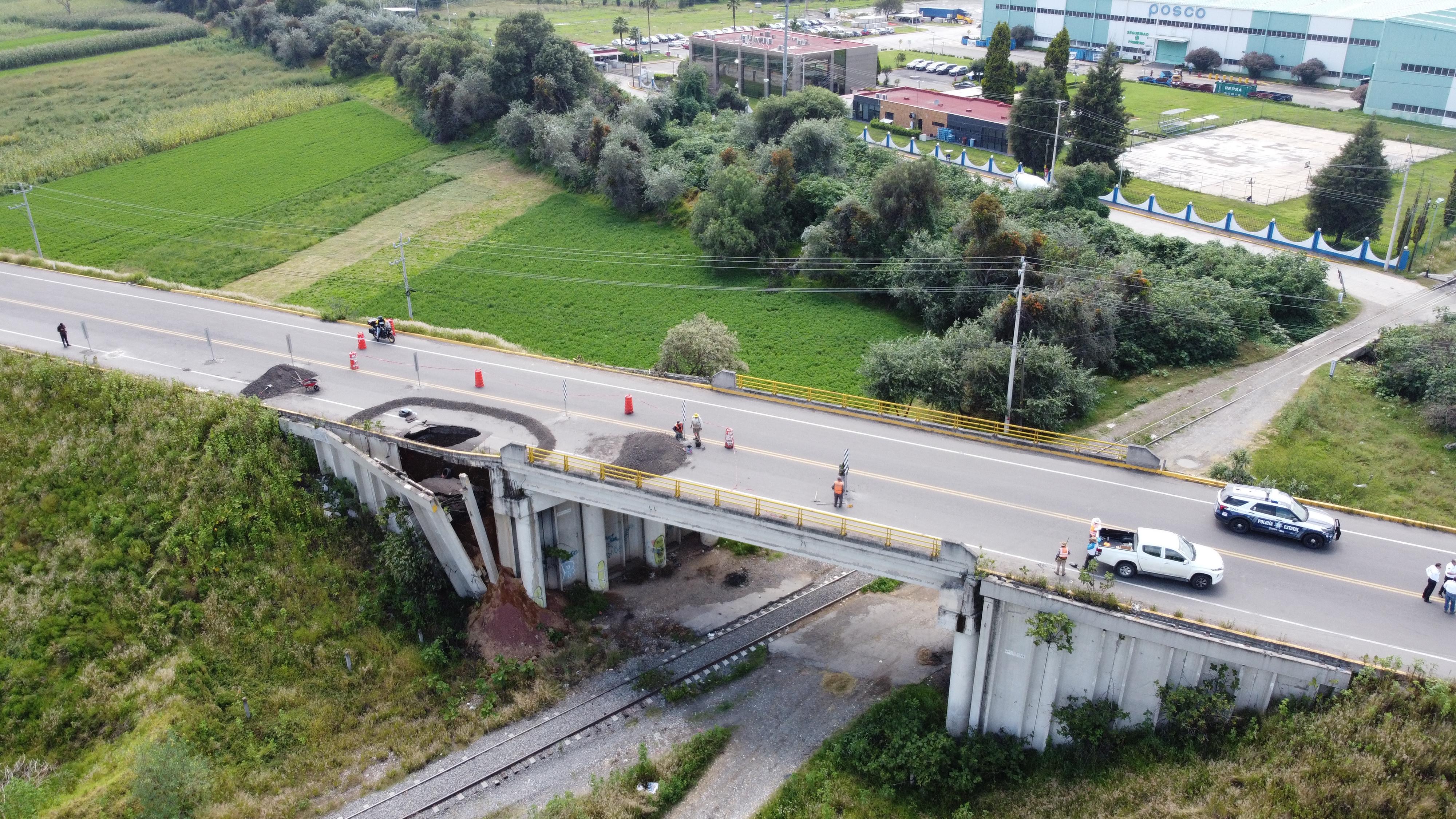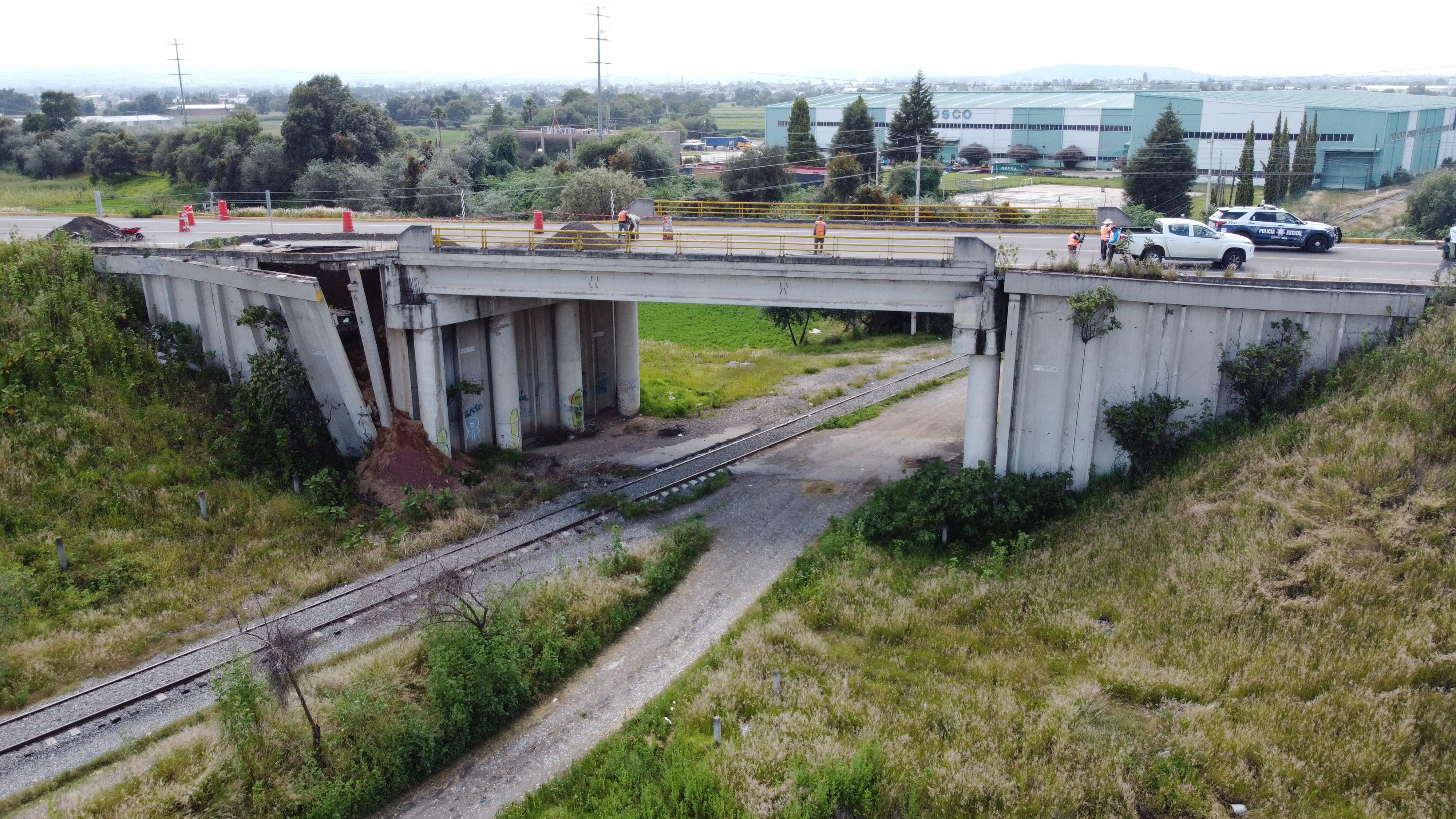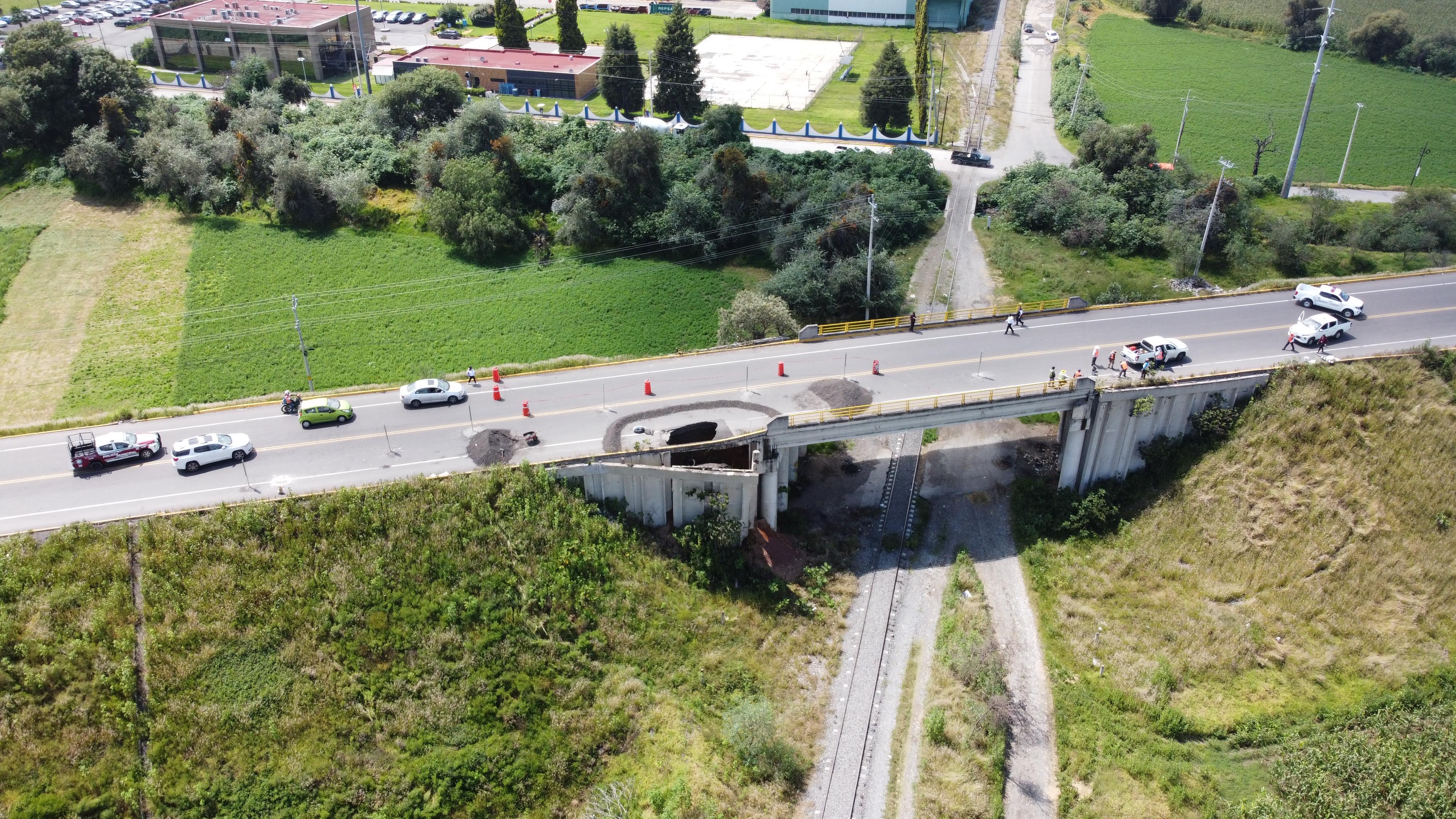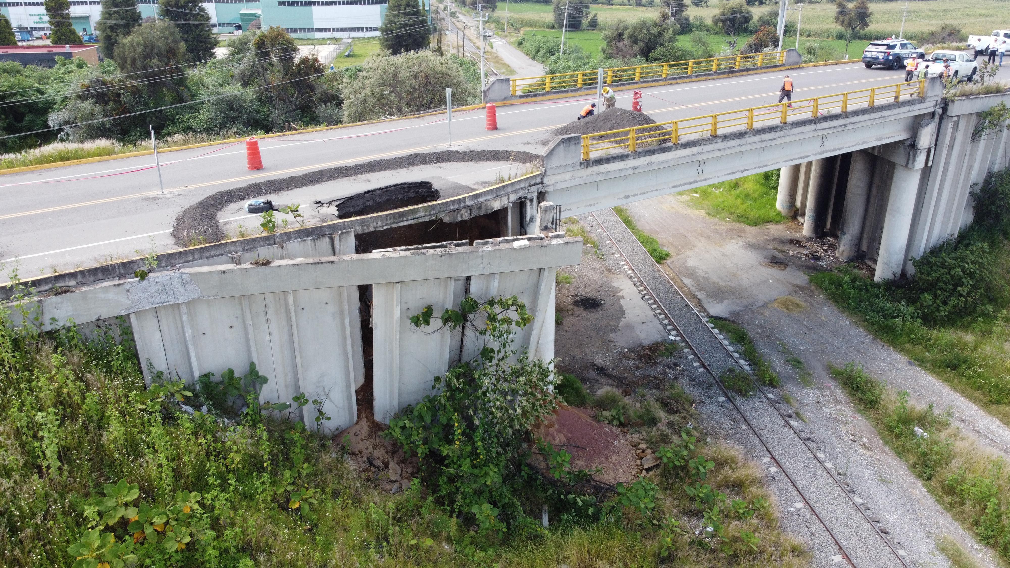 CIUDAD DE PUEBLA, Pue. - La Secretaría de Infraestructura informa que expertos de la dependencia supervisaron el daño que presenta la estructura del paso superior vehicular que comunica al Aeropuerto Internacional “Hermanos Serdán”, a la altura del Km. 0+200 y las vías ferroviarias en el municipio de Huejotzingo, por lo que será cerrado de manera temporal.