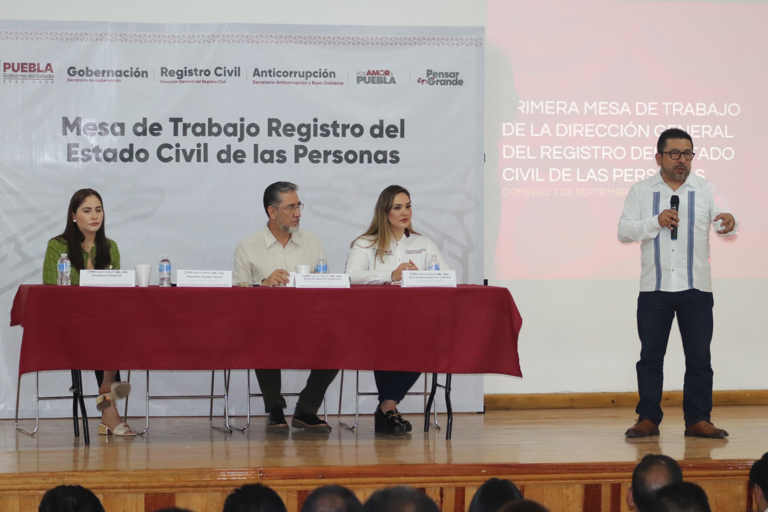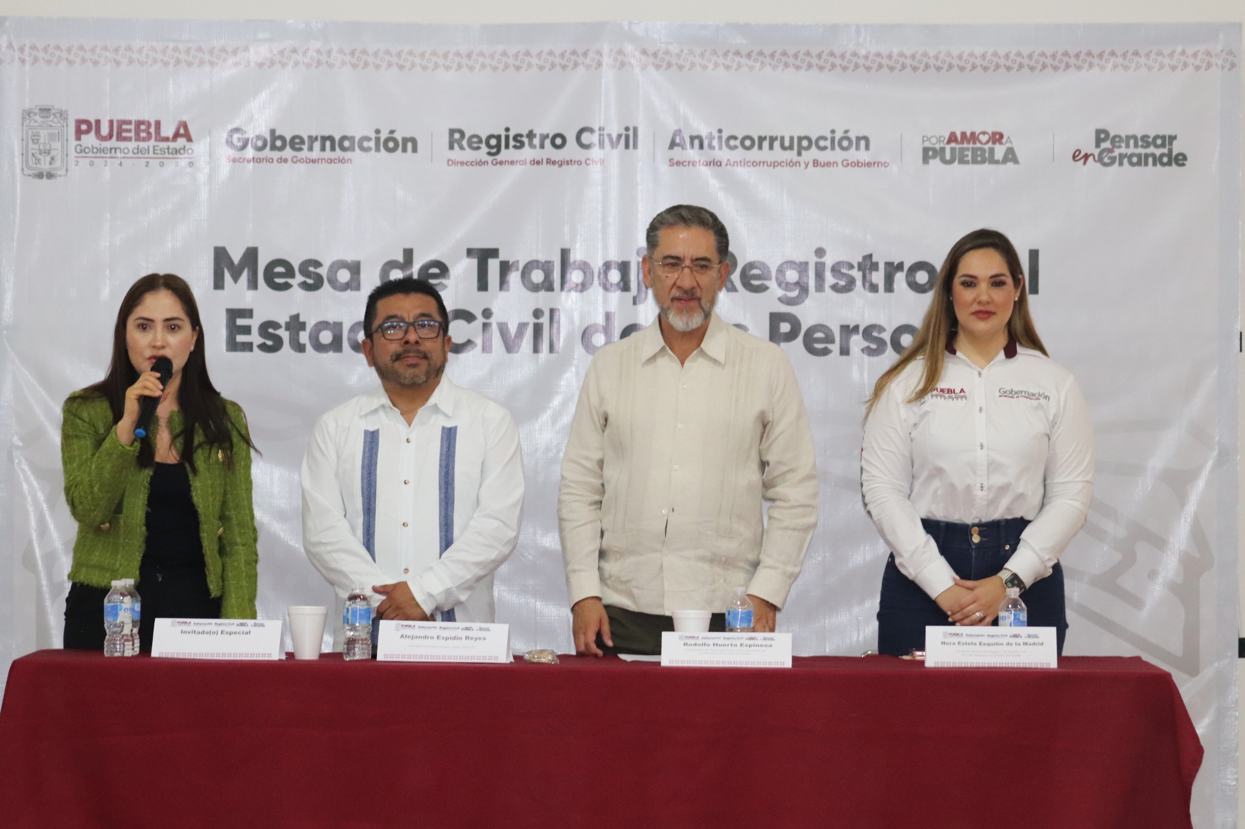 CIUDAD DE PUEBLA, Pue.- En alineación a los principios humanistas del gobierno de Alejandro Armenta, el Registro del Estado Civil de las Personas, en coordinación con la Secretaría Anticorrupción y Buen Gobierno, llevó a cabo una mesa de trabajo con jueces y juezas itinerantes titulares y auxiliares, con el objetivo de fortalecer la coordinación institucional, erradicar malas prácticas y atender áreas de oportunidad en la prestación de servicios a la ciudadanía.