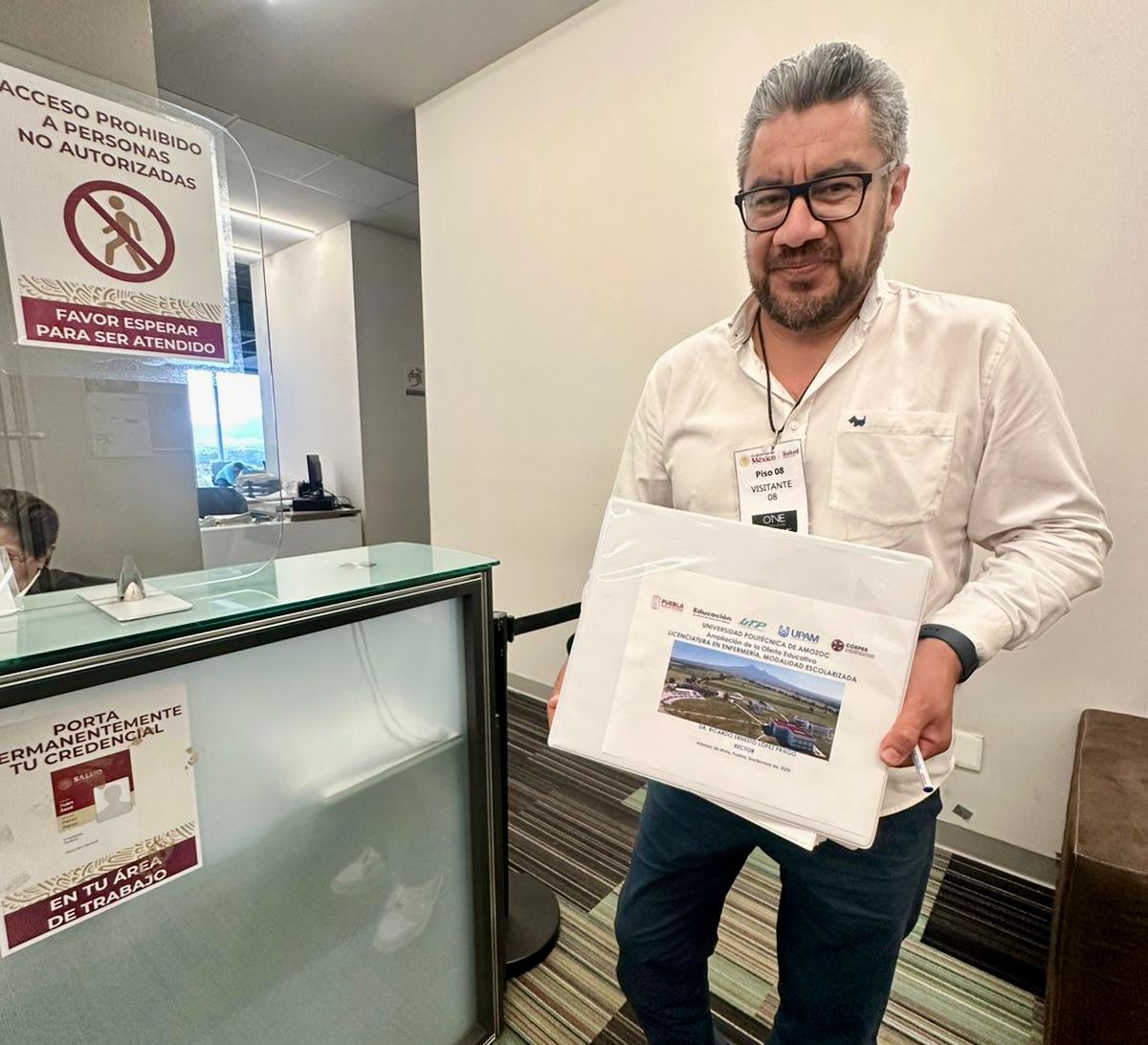 AMOZOC, Pue.- Ante el reciente anuncio del Gobierno de México, a través del IMSS-BIENESTAR, sobre la próxima construcción del hospital del IMSS en Amozoc, que contará con 260 camas para atender a 1.3 millones de derechohabientes, el rector de la Universidad Politécnica de Amozoc (UPAM), Ricardo López Priego, entregó la carpeta de requisitos a la Dirección General de Universidades Tecnológicas y Politécnicas (DGUTYP) y a la Comisión Interinstitucional para la Formación de Recursos Humanos para la Salud (CIFRHS) con la finalidad de aperturar la Licenciatura en Enfermería.