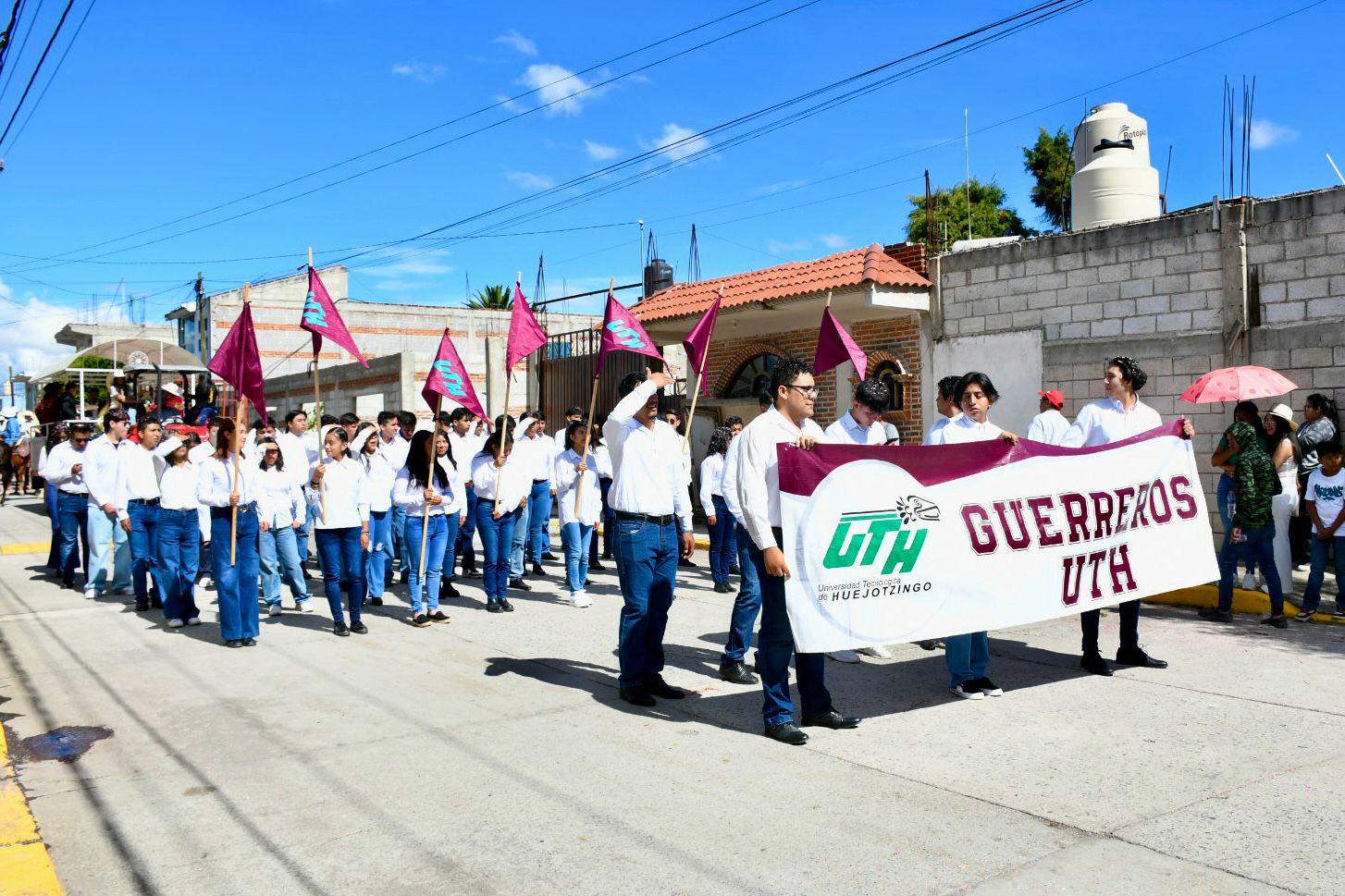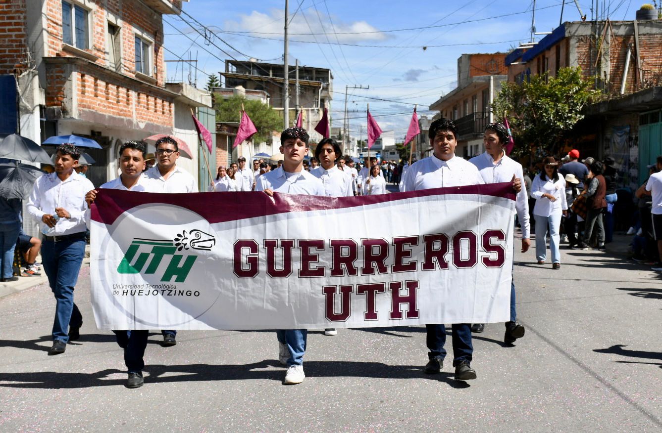 HUEJOTZINGO, Pue.- Estudiantes de la Universidad Tecnológica de Huejotzingo (UTH) desfilaron para conmemorar el 215 aniversario del inicio de la Independencia de México. Esta participación fue parte de una serie de actividades cívicas y culturales para fortalecer el espíritu nacional. La institución busca inculcar en su alumnado un profundo respeto por la historia y los valores patrios.