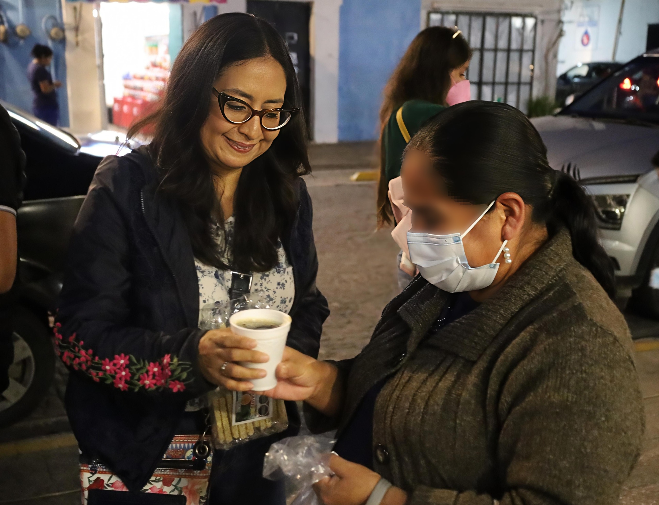 Durante la actividad, las y los voluntarios entregaron agua, café y alimentos a las personas que se encontraban en el área de espera, con la finalidad de brindar compañía y respaldo a familiares de pacientes.
