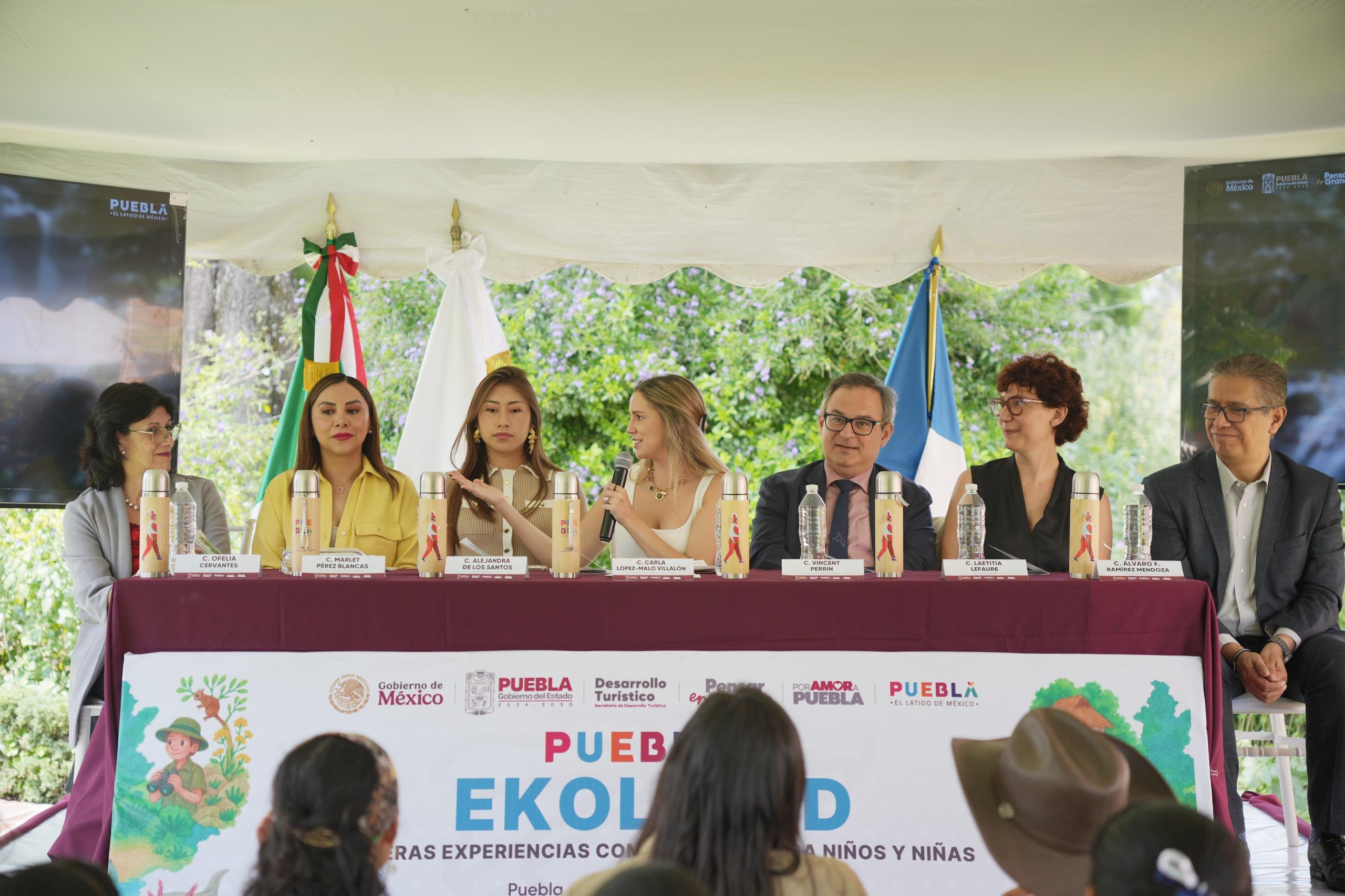 SAN PEDRO CHOLULA, Pue.– Con el propósito de impulsar el Turismo Comunitario, el Gobierno del Estado de Puebla, a través de la Secretaría de Desarrollo Turístico, encabezada por Carla López-Malo Villalón, en compañía del Cónsul General de Francia en México, Vincent Perrin, presentó el libro EKOLOKID: Primeras experiencias comunitarias para niñas y niños, de la autora francesa Laetitia Lefaure. Se trata de una guía educativa y lúdica que invita a las infancias y juventudes a reconectar con la naturaleza de manera divertida, sencilla y responsable.