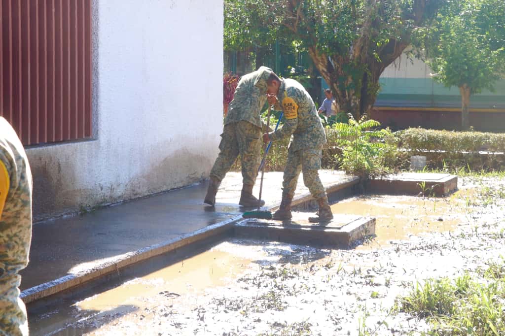Durante el recorrido, las autoridades estatales y federales dialogaron con el personal médico, de enfermería y administrativo, así como con elementos de las Fuerzas Armadas y de la Marina que colaboran en las tareas de limpieza, retiro de escombros y rehabilitación de las áreas afectadas.