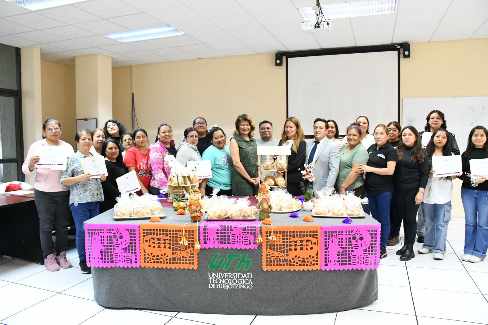 HUEJOTZINGO, Pue.- La Universidad Tecnológica de Huejotzingo (UTH) y la sociedad conforman un binomio perfecto para alcanzar objetivos en beneficio del desarrollo social, asi lo afirmó la rectora Mirna Toxqui Oliver, durante la clausura del taller “Aprende a hacer hojaldra”, impartido por docentes de la Ingeniería en Alimentos.