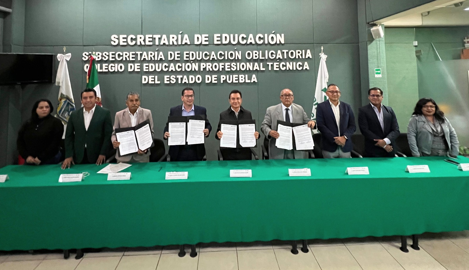 CIUDAD DE PUEBLA, Pue.- A fin de estrechar lazos de cooperación para reforzar la formación integral de la comunidad educativa e impulsar el bienestar en la región, el Colegio de Educación Profesional Técnica del Estado de Puebla (Conalep) y la Universidad Tecnológica de Tehuacán (UTT), firmaron un convenio mediante el cual estudiantes tendrán acceso a servicio social, prácticas profesionales, sistema de educación dual, talleres, capacitación, donaciones, bolsa de trabajo y apoyos económicos.