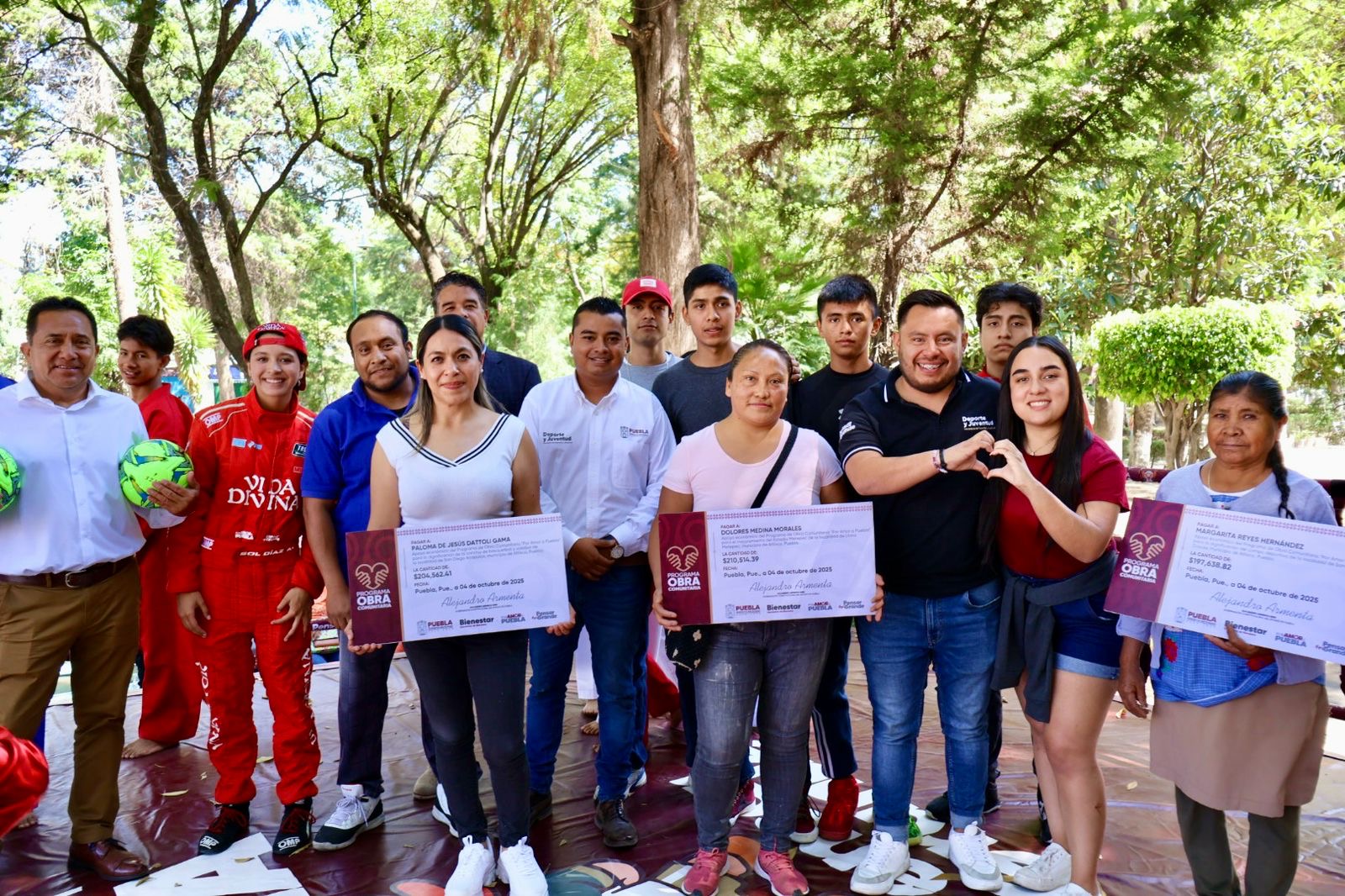 ATLIXCO, Pue.- Con la energía de la activación física, la alegría del arte y el compromiso de servir, el Gobierno del Estado de Puebla, a través de la Secretaría de Deporte y Juventud, llevó a cabo el programa “Tejiendo Paz” y la entrega de cheques de Obra comunitaria, que beneficiará trabajos a favor de la creación y remodelación de espacios deportivos.
