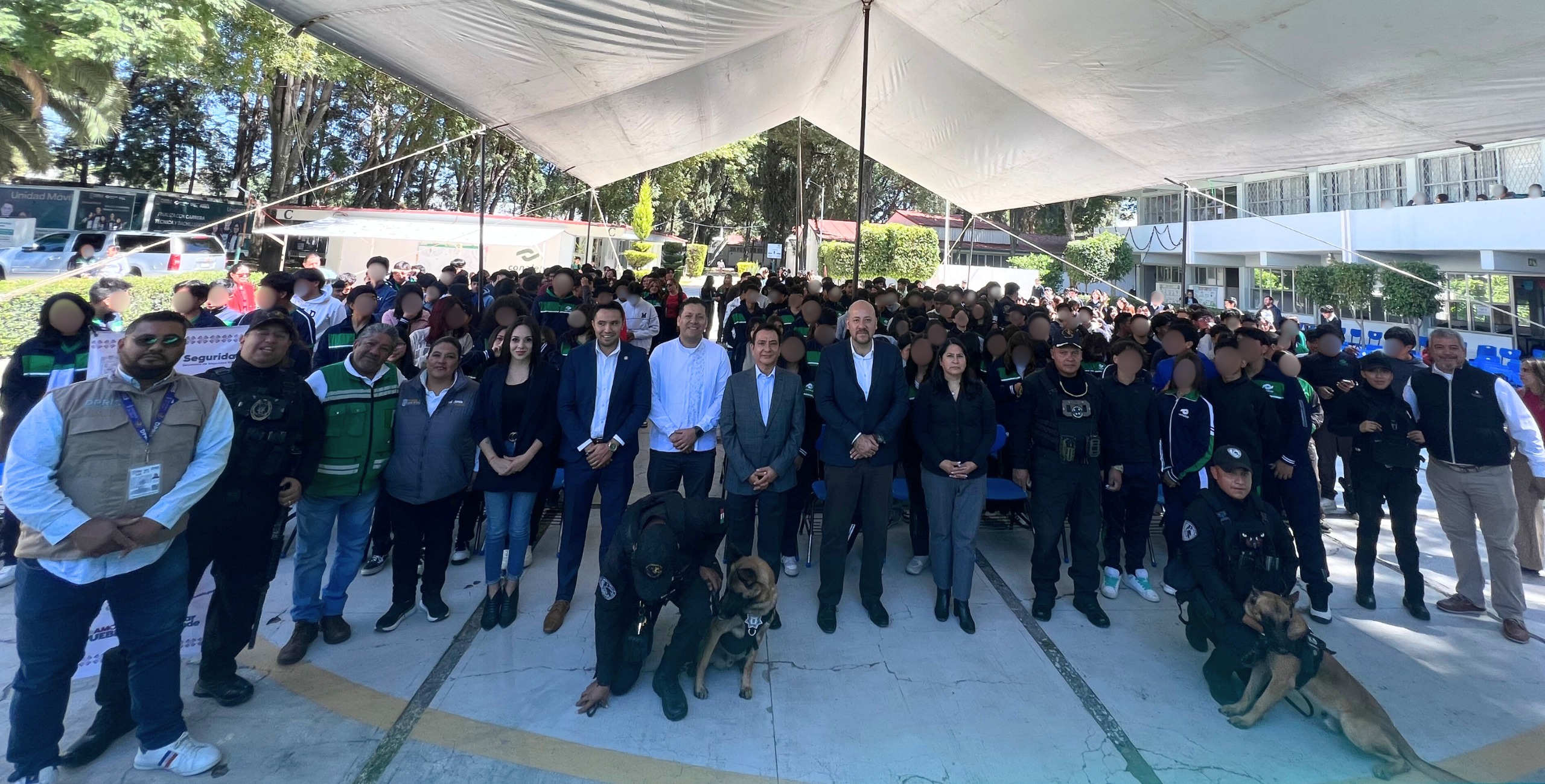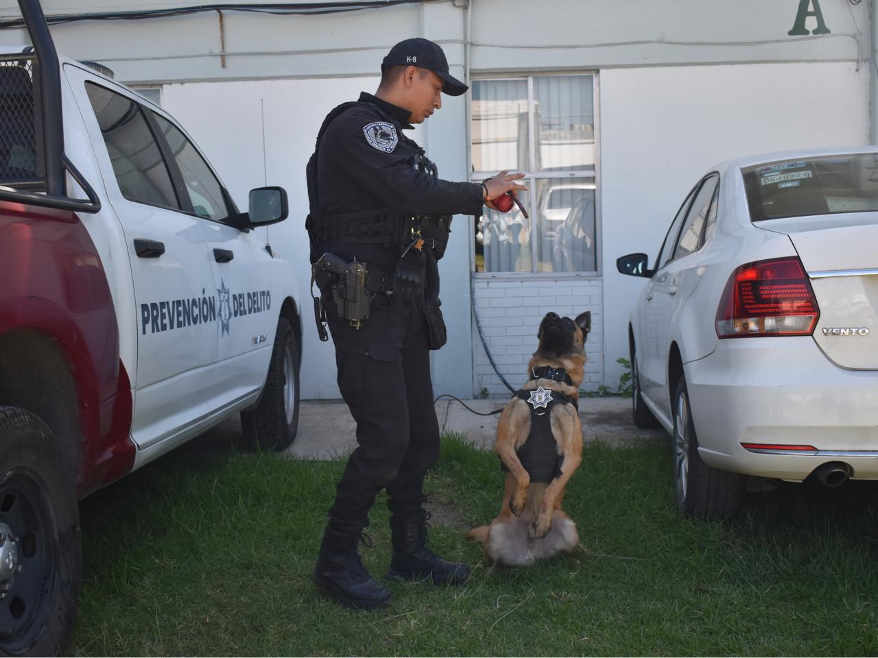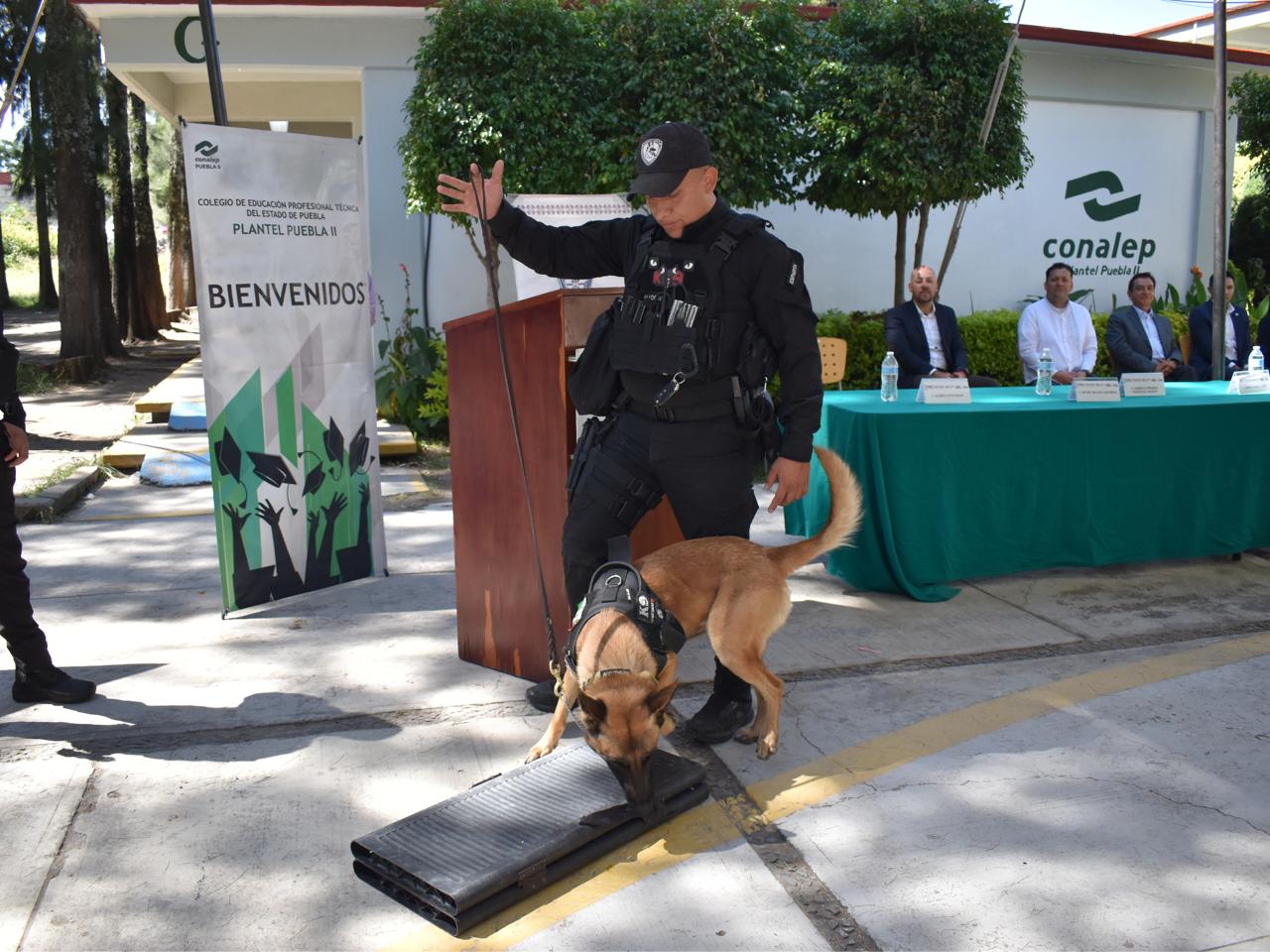 Por último, binomios caninos del Escuadrón Canófilo K9 de la SSP, que dirige Arturo Galván Castañeda, llevaron a cabo una presentación para mostrar la dinámica de rastreo y localización de estupefacientes.