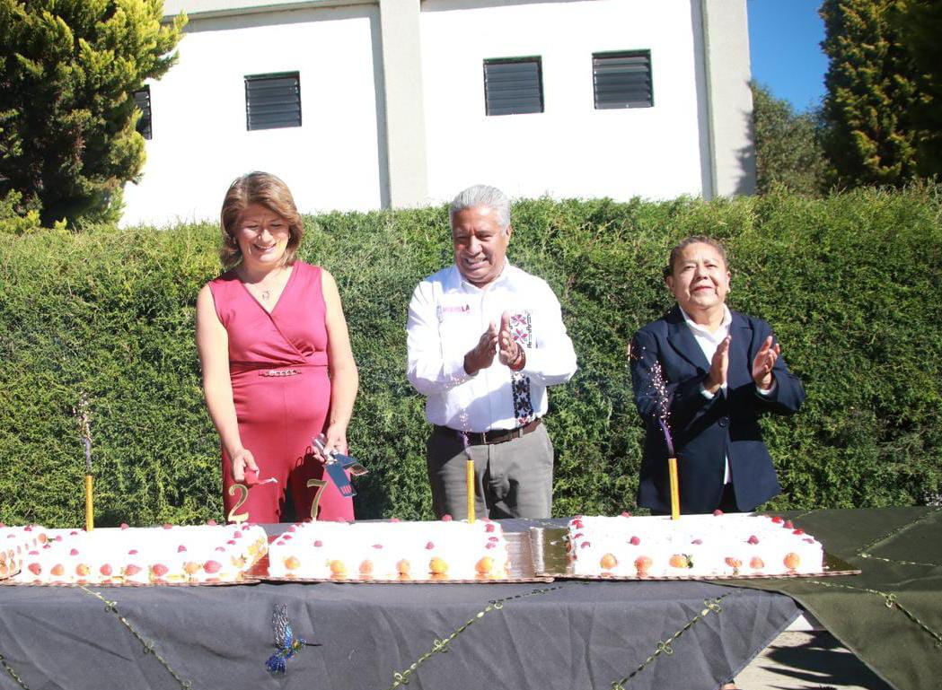 Finalmente y como parte de los festejos del 27 aniversario de la UTH, se llevó a cabo una celebración en las instalaciones de la institución, donde el titular de la SEP felicitó al alumnado y a la rectora Mirna Toxqui Oliver, a quien reconoció por la gestión realizada al frente de la universidad.