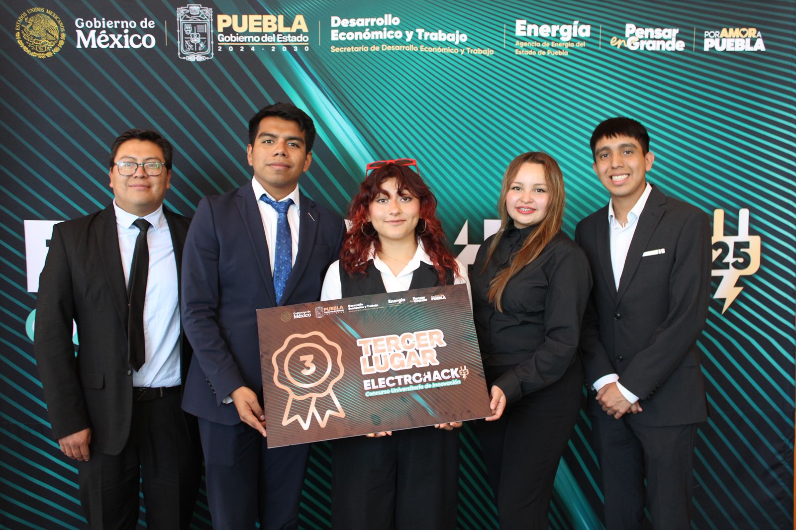 –El equipo que obtuvo el primer lugar está integrado por estudiantes de la Universidad del Valle de Puebla y la Benemérita Universidad Autónoma de Puebla con el proyecto "Microhidrogeneración y tratamiento de agua en el río Apulco".