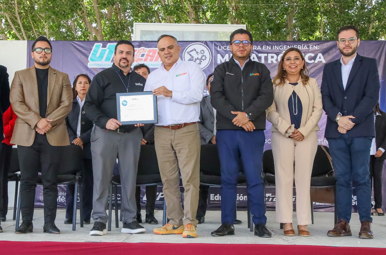 Durante la ceremonia, la empresa Intelligent otorgó una placa de reconocimiento a la UTTECAM como centro certificador de SOLIDWORKS CSWA y CSWP, distinción entregada por el gerente nacional de Educación de Intelligent, Carlos Chávez Jurado. Dichas certificaciones avalan el dominio en modelado, diseño y análisis de piezas y ensamblajes en ingeniería.