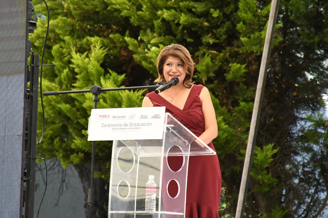 Por su parte, la rectora de la UTH, Mirna Toxqui Oliver, se dirigió a las y los estudiantes, familias, autoridades estatales y municipales, así como a empresarios, directivos del sector educativo de diferentes niveles y al público en general. En su mensaje, afirmó que quienes terminan el Técnico Superior Universitario se convierten, a partir de este momento, en protagonistas de la transformación económica y social de la región, el estado y México, y están listos para innovar, liderar y contribuir con soluciones concretas en sus respectivos campos.