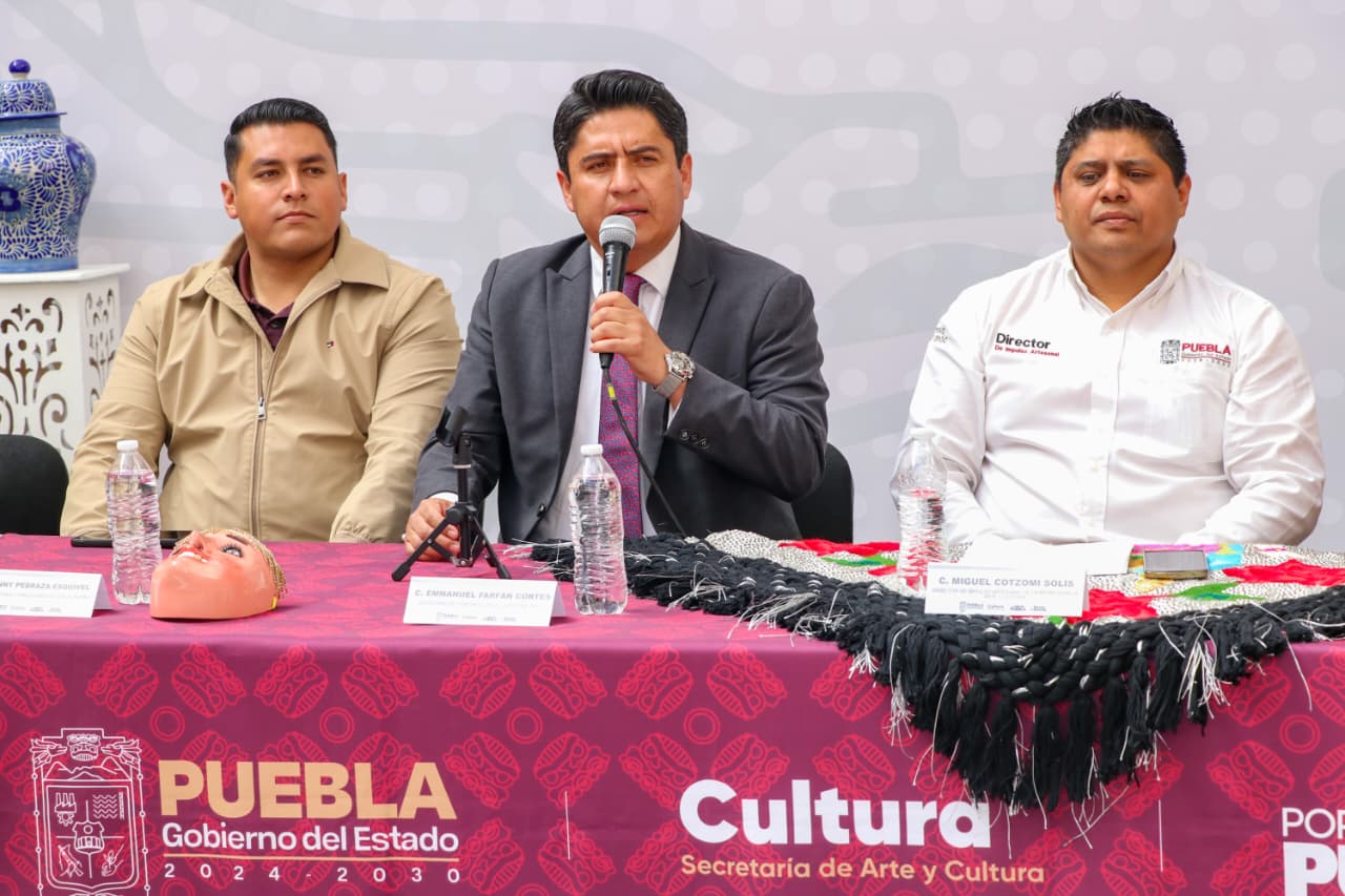 Durante la rueda de prensa encabezada por el director de Impulso Artesanal, Miguel Cotzomi Solís, se resaltó que el encuentro busca fortalecer la economía local y difundir el talento de las y los artesanos poblanos, convocados por el Gobierno del Estado de Puebla para exhibir y ofrecer sus creaciones.