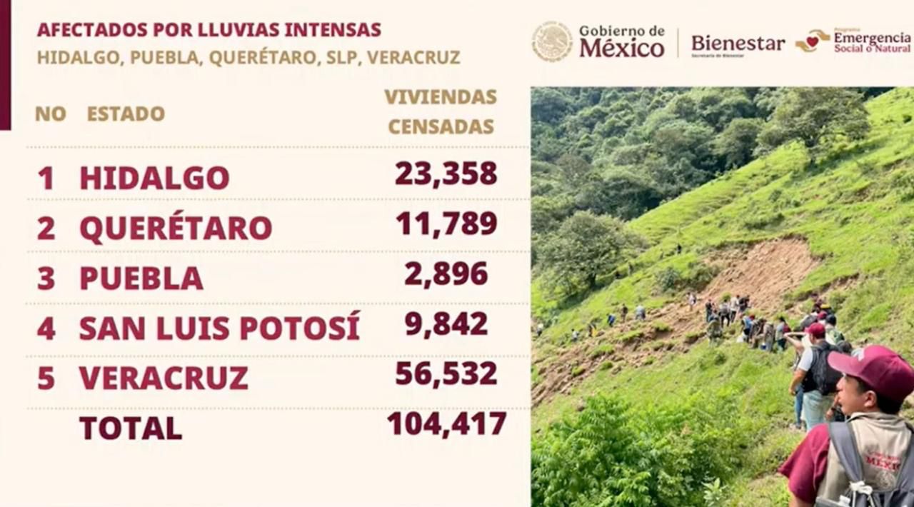 La secretaria de Bienestar, Ariadna Montiel, detalló que más de 4 mil 800 servidores y servidoras de la nación realizaron un censo en tiempo récord, ya que lograron identificar 104 mil 417 viviendas afectadas en cinco estados. Ariadna Montiel resaltó que este operativo permitió entregar apoyos en efectivo y en especie con rapidez y transparencia, y fortalece el vínculo entre la federación y las comunidades.