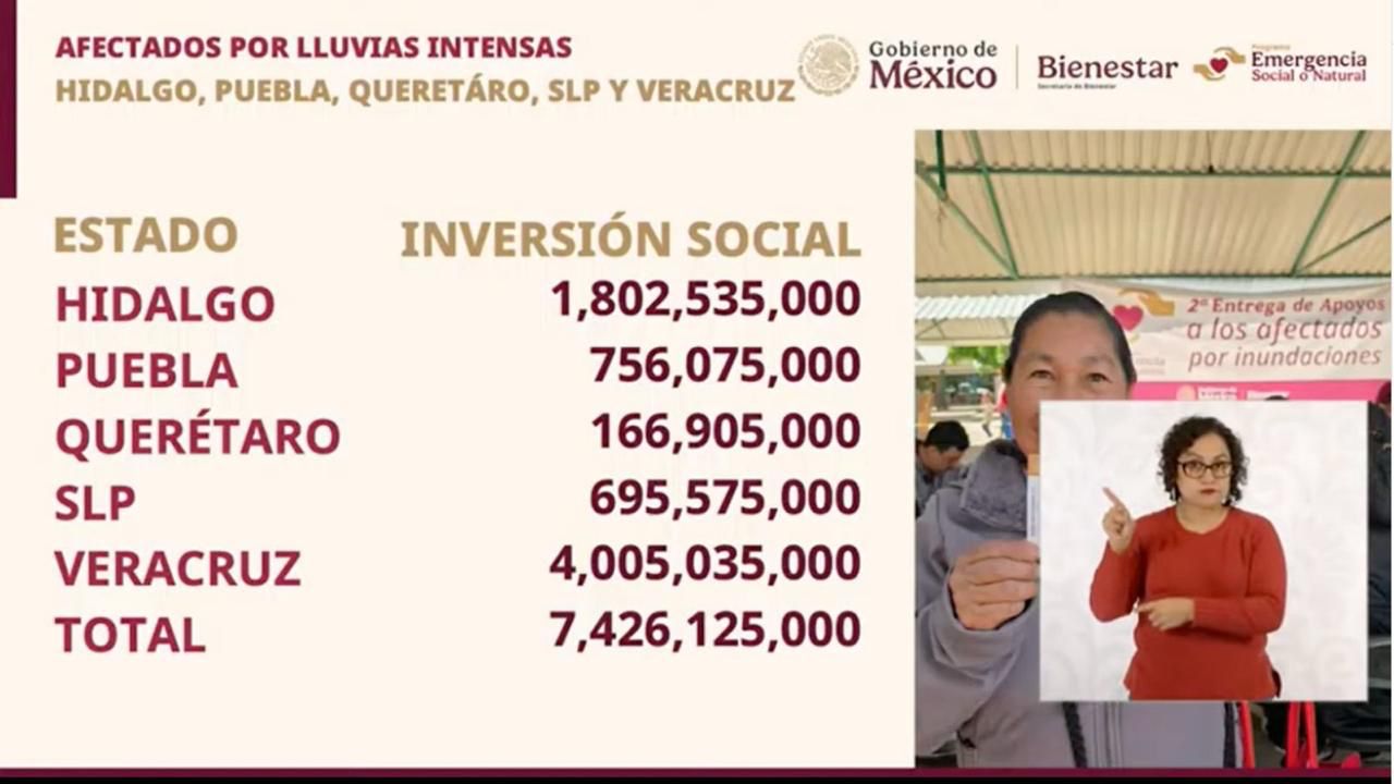 El gobierno federal destinó una inversión social de 7 mil 426 millones de pesos para beneficiar a más de 140 mil familias afectadas en los cinco estados impactados. En el caso de Puebla, la entidad recibió 756 millones de pesos, los cuales se aplican en apoyos a vivienda, comercios y pequeños productores, lo que priorizó las zonas más vulnerables, incluidas comunidades indígenas de la Sierra Norte.