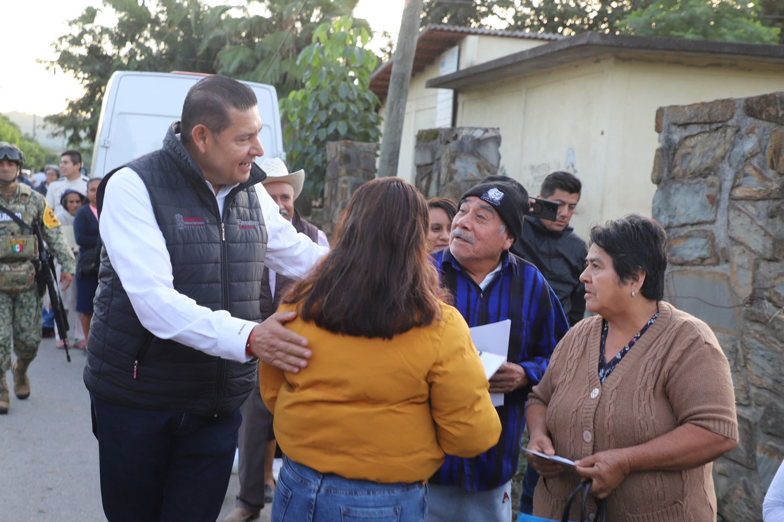 Acompañado del delegado federal de Programas para el Desarrollo, Rodrigo Abdala, y de la presidenta municipal Araceli Gaspar, el mandatario expresó su reconocimiento por la atención permanente de la presidenta Claudia Sheinbaum hacia Puebla, así como de las y los elementos de la Secretaría de la Defensa Nacional (DEFENSA), Secretaría de Marina y Guardia Nacional. Subrayó que la federación activó de inmediato la segunda etapa de ayuda, por ello agradeció el trabajo de los servidores de la Nación y de las distintas dependencias estatales y municipales.