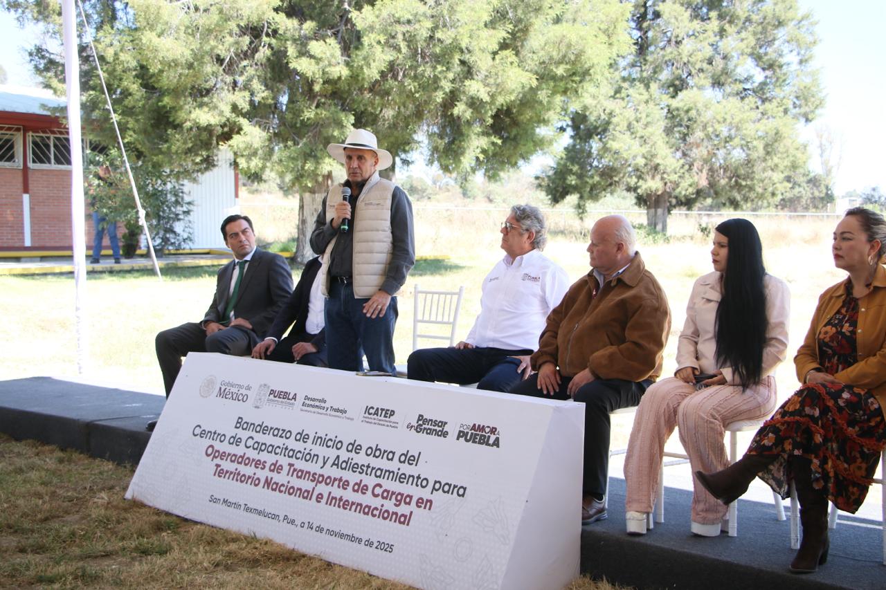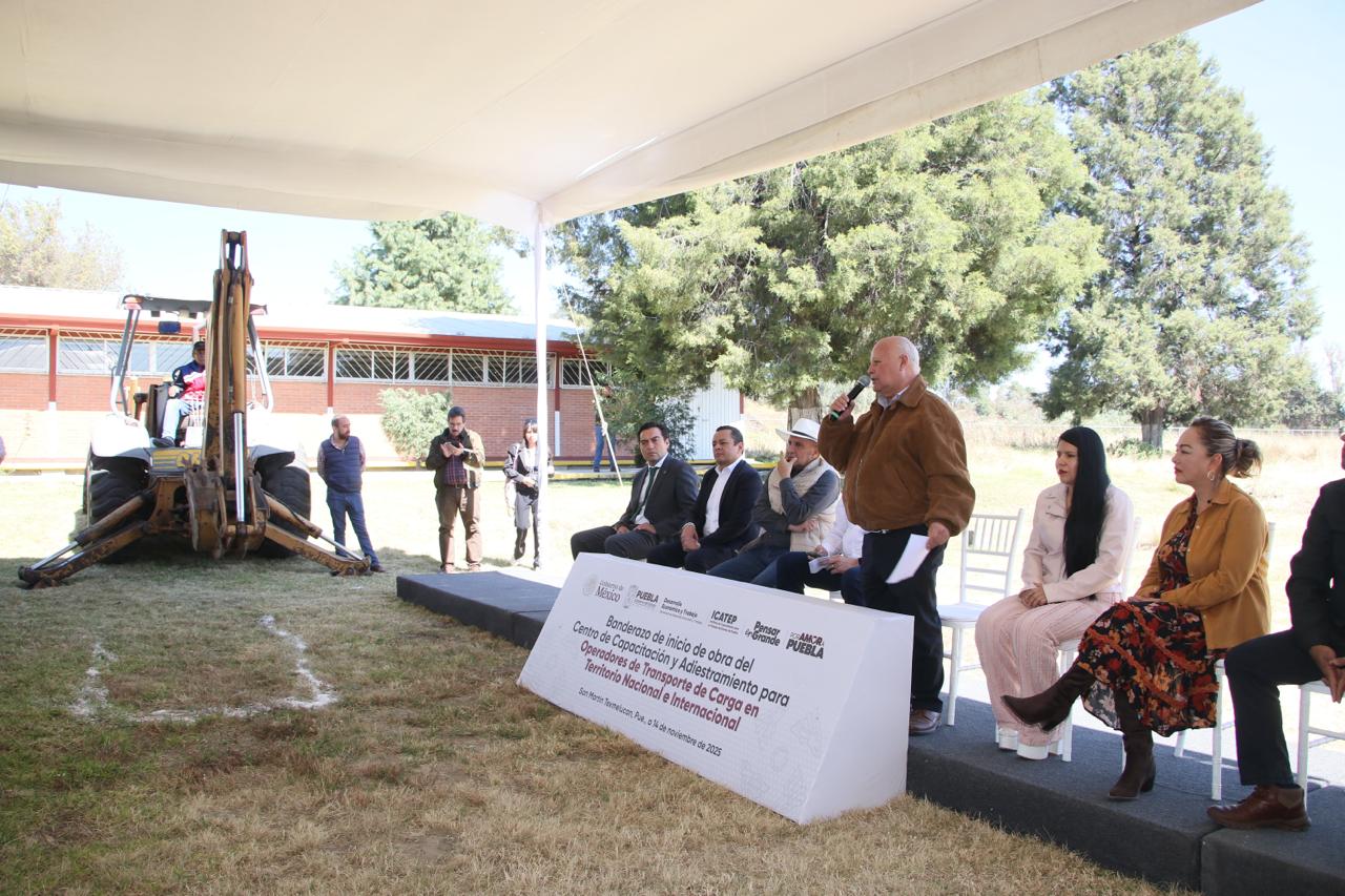 SAN MARTÍN TEXMELUCAN, Pue.- El gobierno estatal que encabeza Alejandro Armenta, a través del Instituto de Capacitación para el Trabajo del Estado de Puebla (ICATEP), en conjunto con la Cámara Nacional del Autotransporte de Carga (CANACAR), llevó a cabo el banderazo de inicio de obra del Centro de Capacitación y Adiestramiento para Operadores de Transporte de Carga en Territorio Nacional e Internacional, en las instalaciones del ICATEP Unidad San Martín.