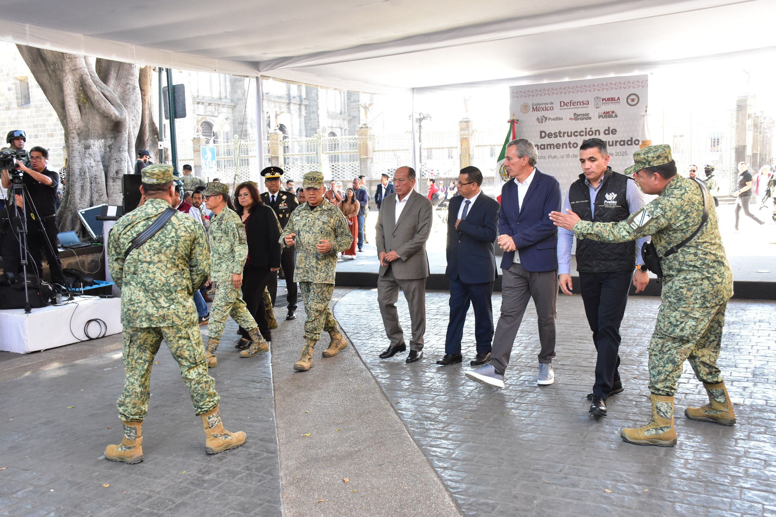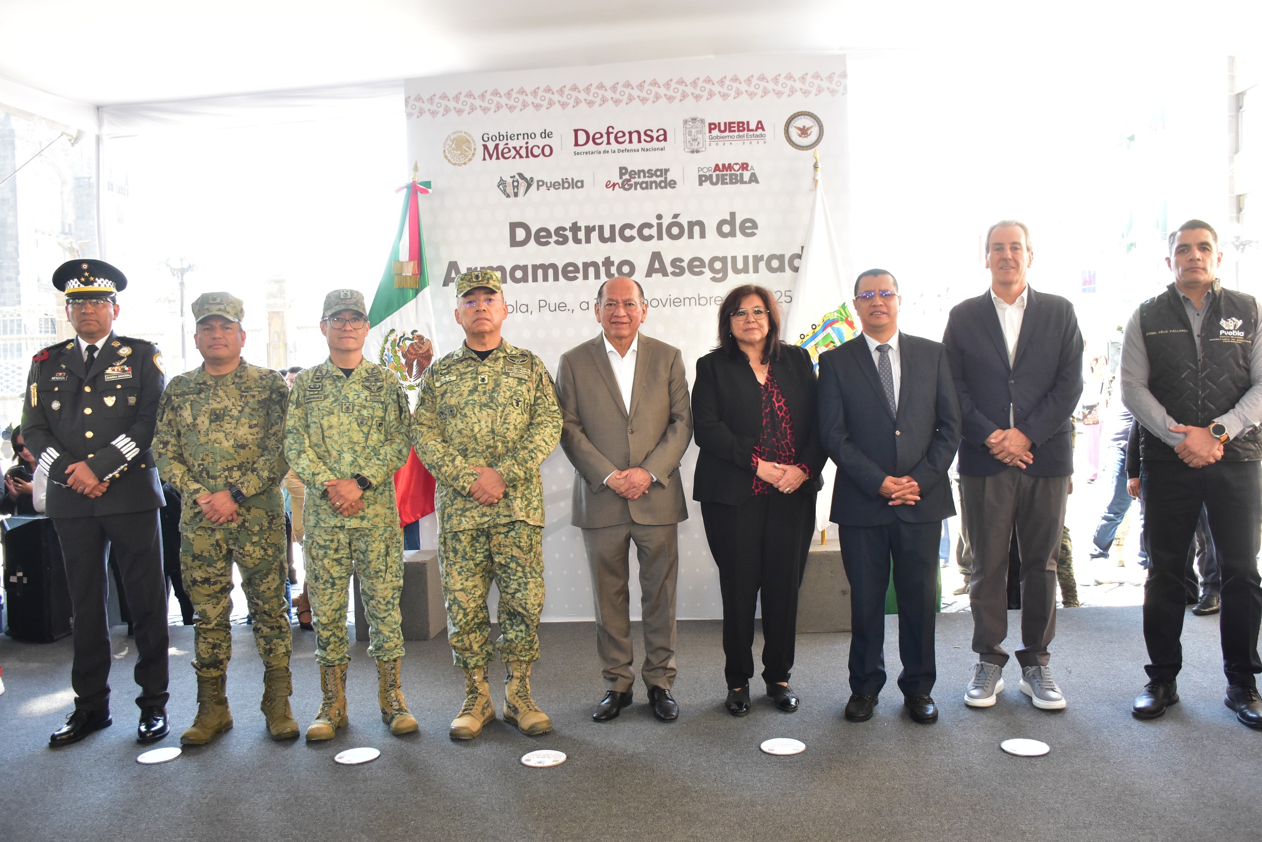 CIUDAD DE PUEBLA, Pue.- Autoridades militares, estatales y municipales encabezaron la ceremonia de destrucción del armamento asegurado durante las pasadas campañas en todo el estado, con lo que, continúan las labores para mantener estabilidad y paz, como lo ha instruido la Presidenta de México, Claudia Sheinbaum.